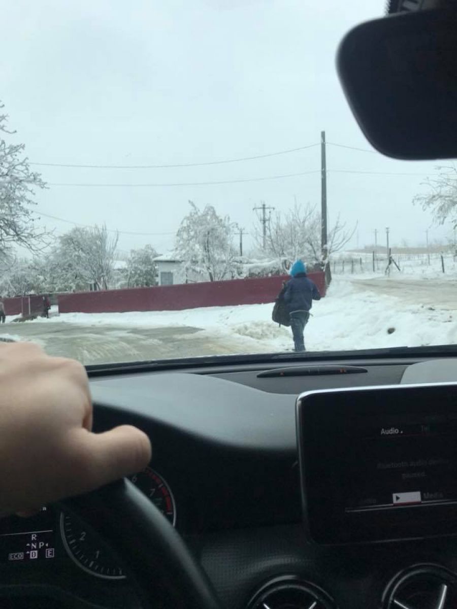 ”L-am văzut pe o stradă foarte populată din Botoșani. Evident că nimeni nu se obosea să oprească sau să coboare din mașinile lor încălzite, dar eu am simțit o empatie puternică față de el. L-am întrebat unde merge, mi-a răspuns că vrea să ajungă acasă, în satul de lângă oraș. Când a urcat în mașină l-am întrebat dacă a pierdut autobuzul… spre surprinderea mea a spus că banii i-au fost furați din geacă în timpul orei de sport. Mi-a zis că mai avea fix 3 lei să ajungă acasa și ăia i-au fost furați iar probabil parinții lui îl vor certa pentru asta.