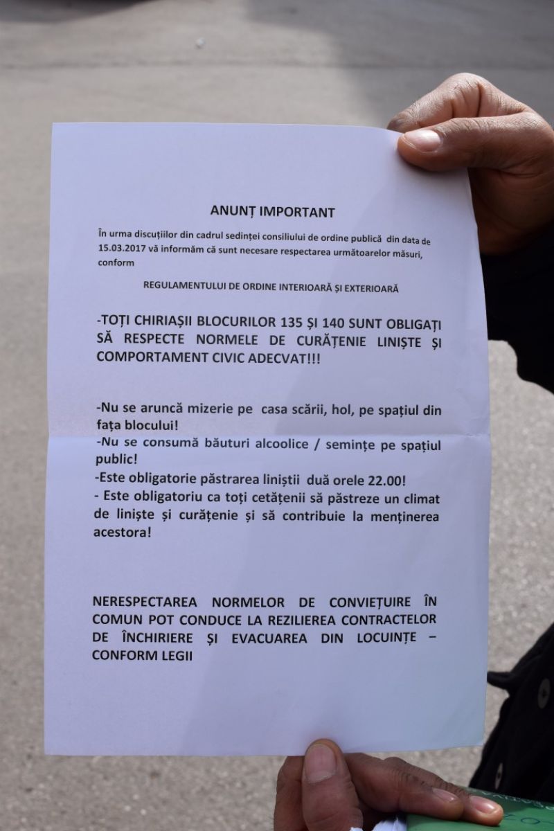 Iar în acest sens au pus mai multe afișe pe holurile imobilelor și i-au avertizat pe chiriași că pot fi evacuați dacă nu respectă normele de bună conviețuire.