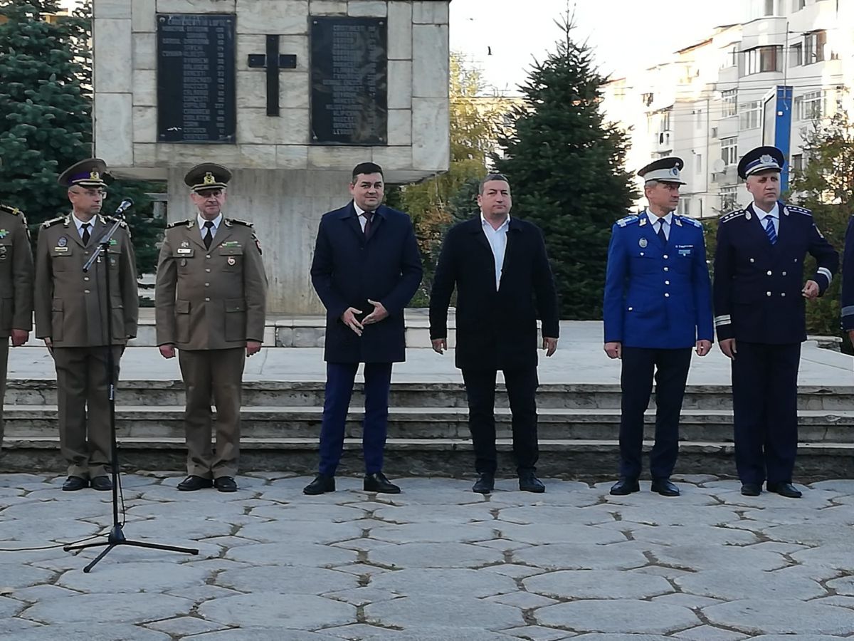 Puțin înainte de ora 17.00, lângă Monumentul Eroilor Botoșăneni din cel de-al Doilea Război Mondial au început să se adune miliari, jandarmi, oficialități. Printre cei care au îmbrăcat luni seara tricolul Invictus s-au numărat și pompierul maratonist Iulian Rotariu, dar și pr. militar Teodor Cenușă.