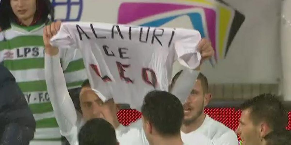 Golul lui George Miron prin care FC Botoșani a deschis scorul în minutul 17 al meciului cu Timișoara, în primul meci al play-off-ului, i-a fost dedicat de fundașul central antrenorului Leo Grozavu, care și-a dat demisia miercuri.