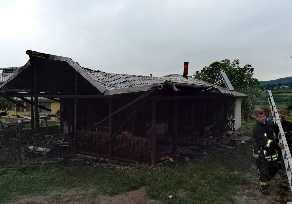 Acoperișul unei case, terasa și bunurile din interiorul unei încăperi folosită ca magazin s-au aprins, cel mai probabil, din cauza unui scurtcircuit.
