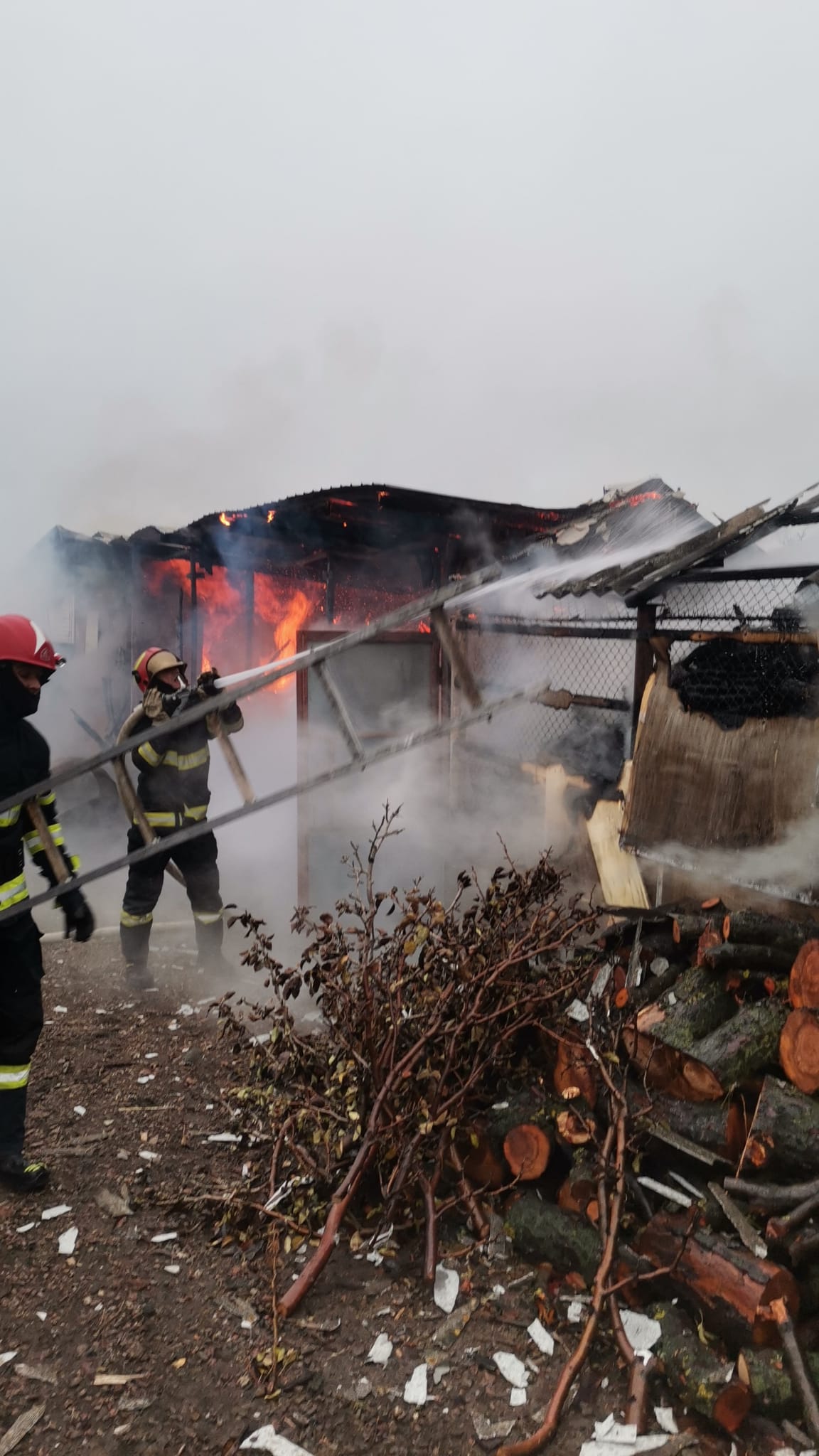 Când au ajuns echipajele de salvatori, ardeau violent cele două anexe, aproximativ zece tone de lemne de foc și peste două tone de rumeguș. Pompierii au intervenit rapid, astfel încât flăcările să nu se extindă la adăpostul de animale și casă. Pentru stingerea incendiului și înlăturarea efectelor, aceștia au acționat mai bine de patru ore. Fiica proprietarilor a avut nevoie de îngrijiri medicale întrucât a suferit un atac de panică, dar a refuzat transportul la spital.