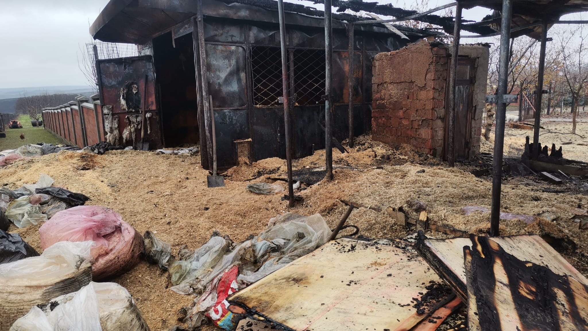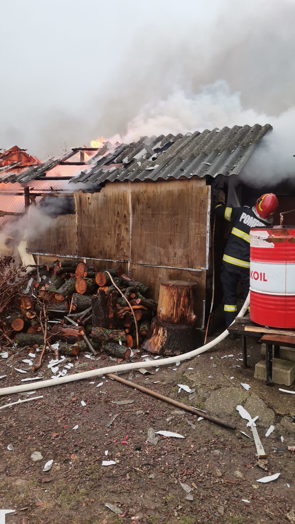 Două magazii unde erau depozitate lemne de foc și rumeguș au fost cuprinse de flăcări. Proprietarul a fost cel care a sunat la 112 după ajutor, îngrijorat fiind de faptul că incendiul s-ar putea extinde la toate construcțiile din gospodărie.
