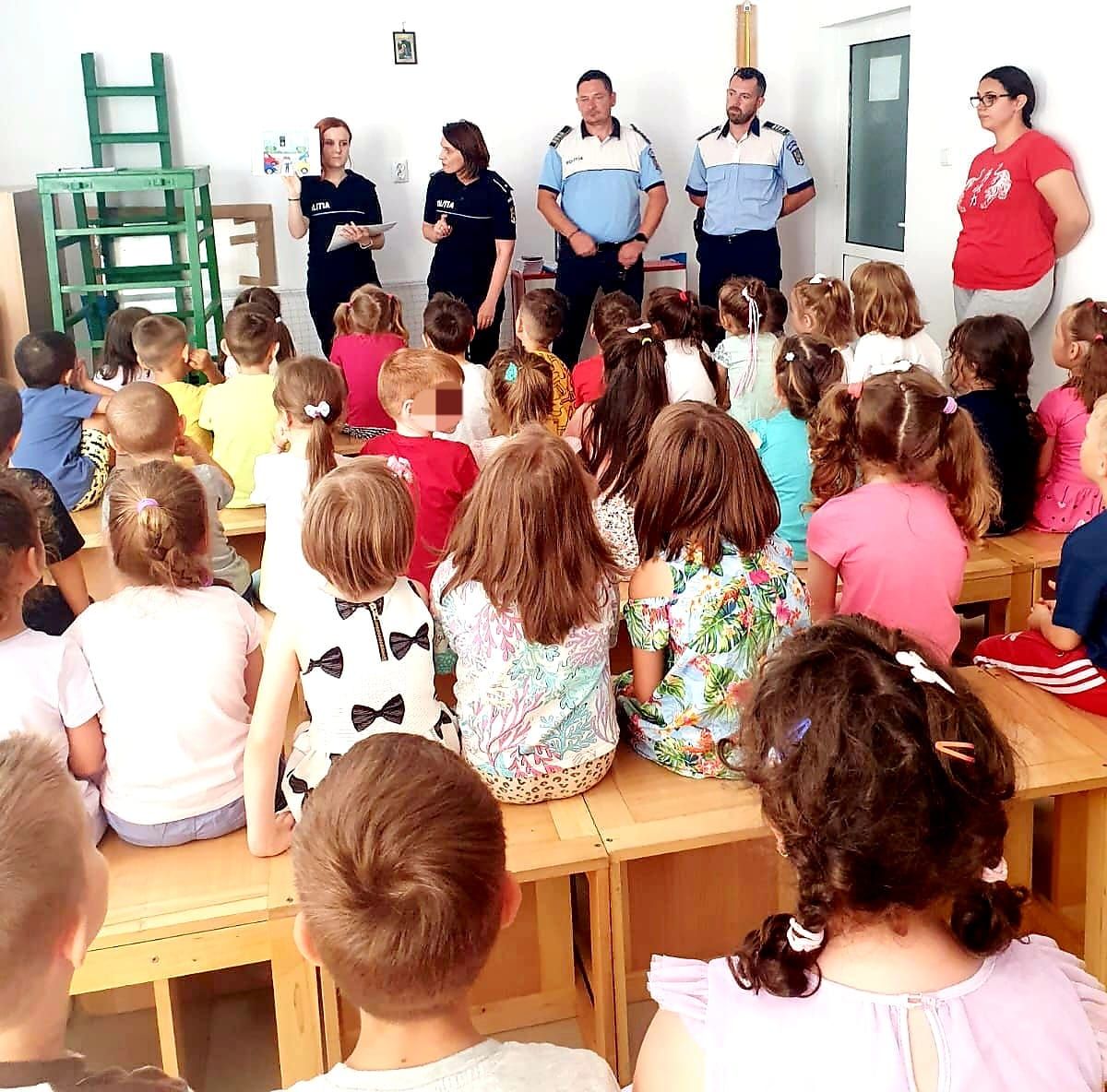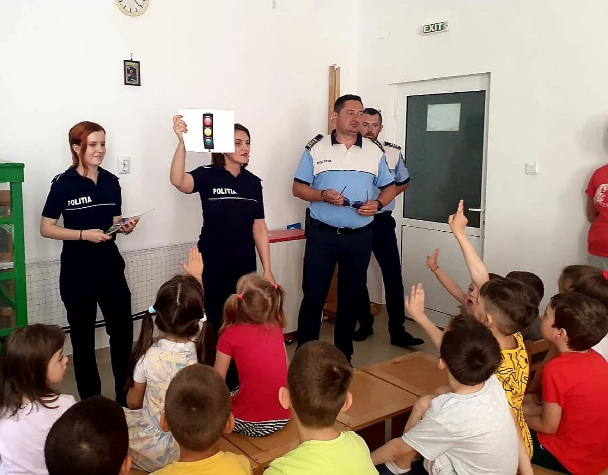 Astfel, copiii prezenți la activitate au discutat cu polițiștii despre semnele de circulație, regulile de traversare a străzii, regulile privind purtarea centurii de siguranță, dar și folosirea scaunului special pentru copii, în calitate de pasageri ai autoturismelor.