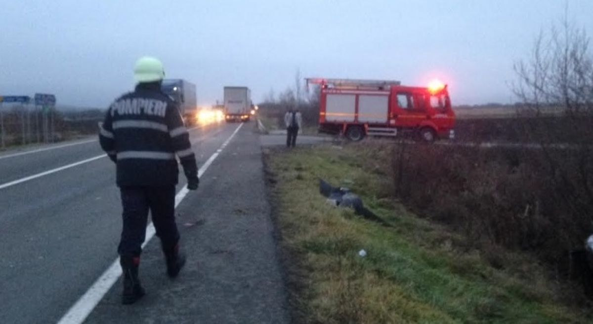 Accidentul a avut loc joi seară, fiind implicată o mașină condusă de un şofer care a vrut să facă un viraj la stânga fără a semnaliza din timp.