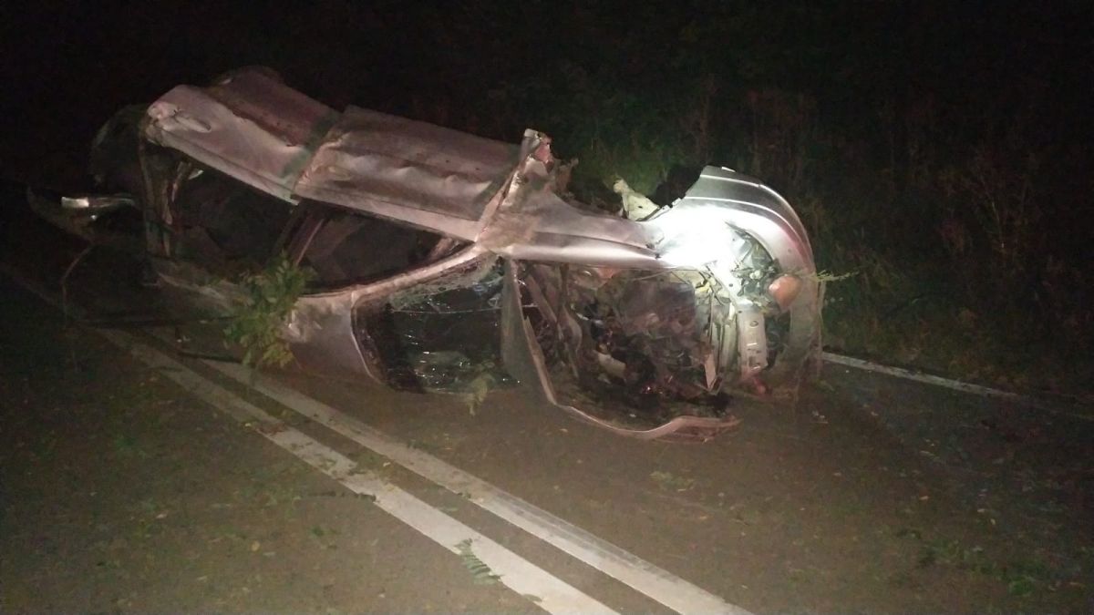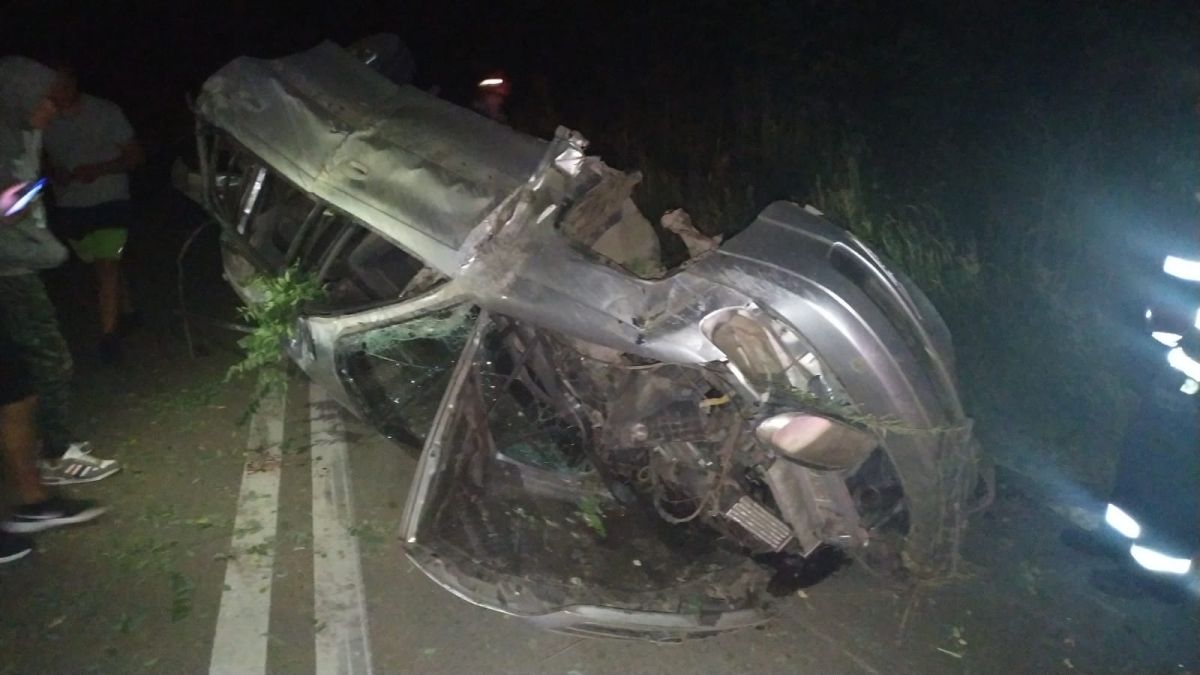 Un autoturism a ajuns un morman de fiare după ce s-a rostogolit pe șosea, s-a izbit într-un copac, apoi a aterizat pe cupolă.