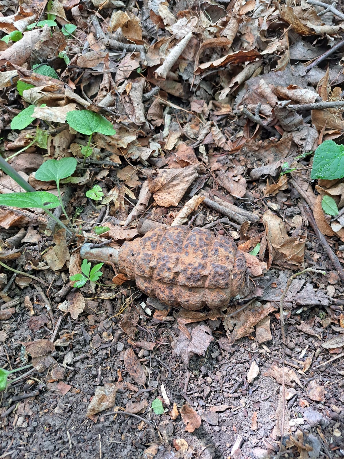 O grenadă de mână defensivă a fost găsită într-o pădure din localitatea Lozna, în această după - amiază, de un bărbat.