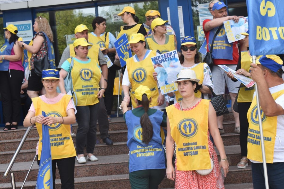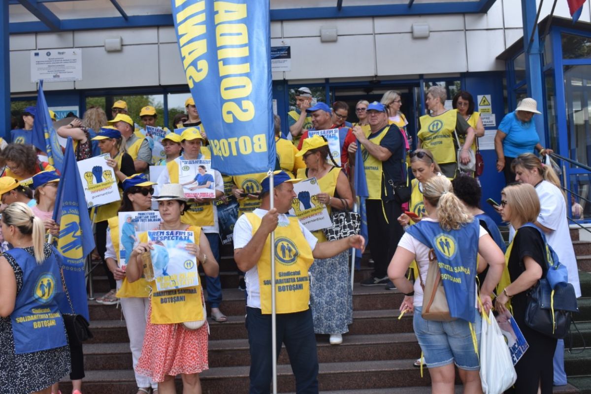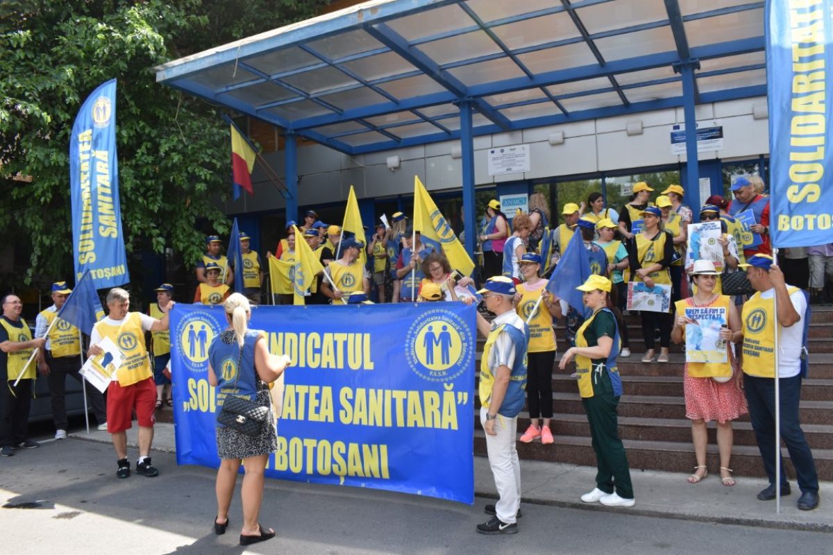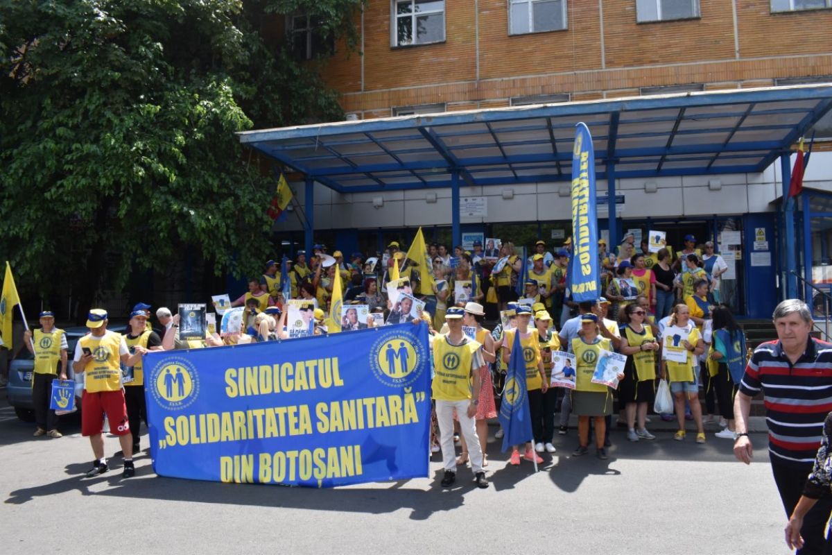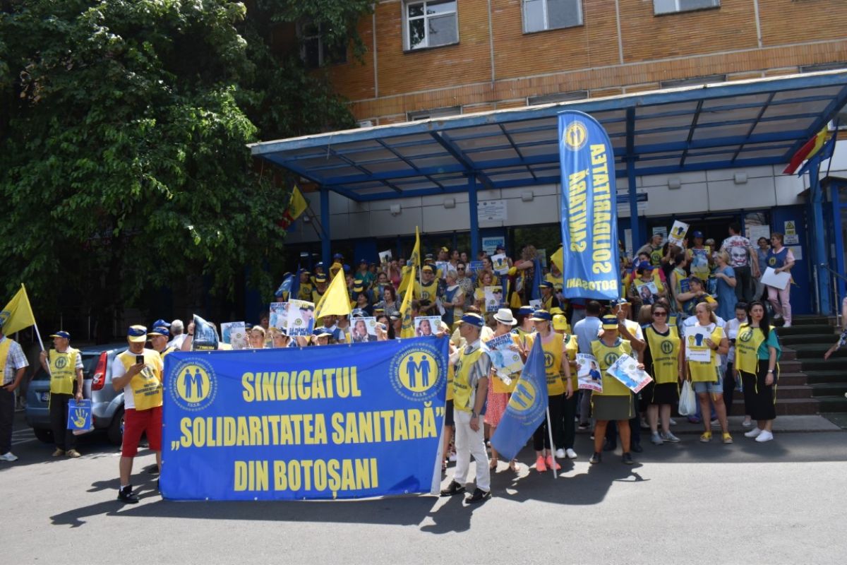 Peste 100 de salariați din sistemul sanitar botoșănean au pichetat astăzi Spitalul Județean Mavromati.