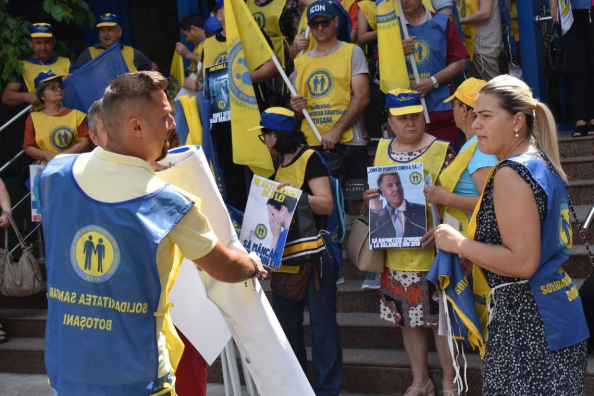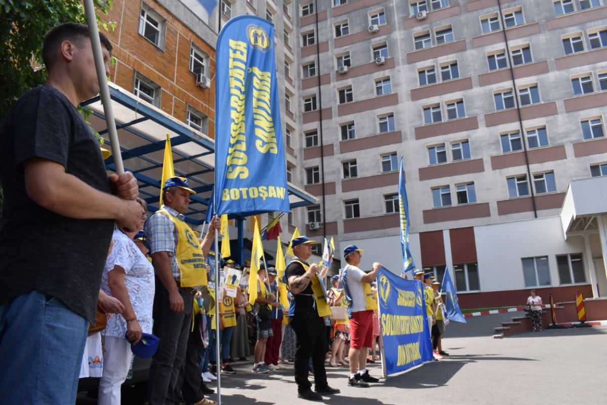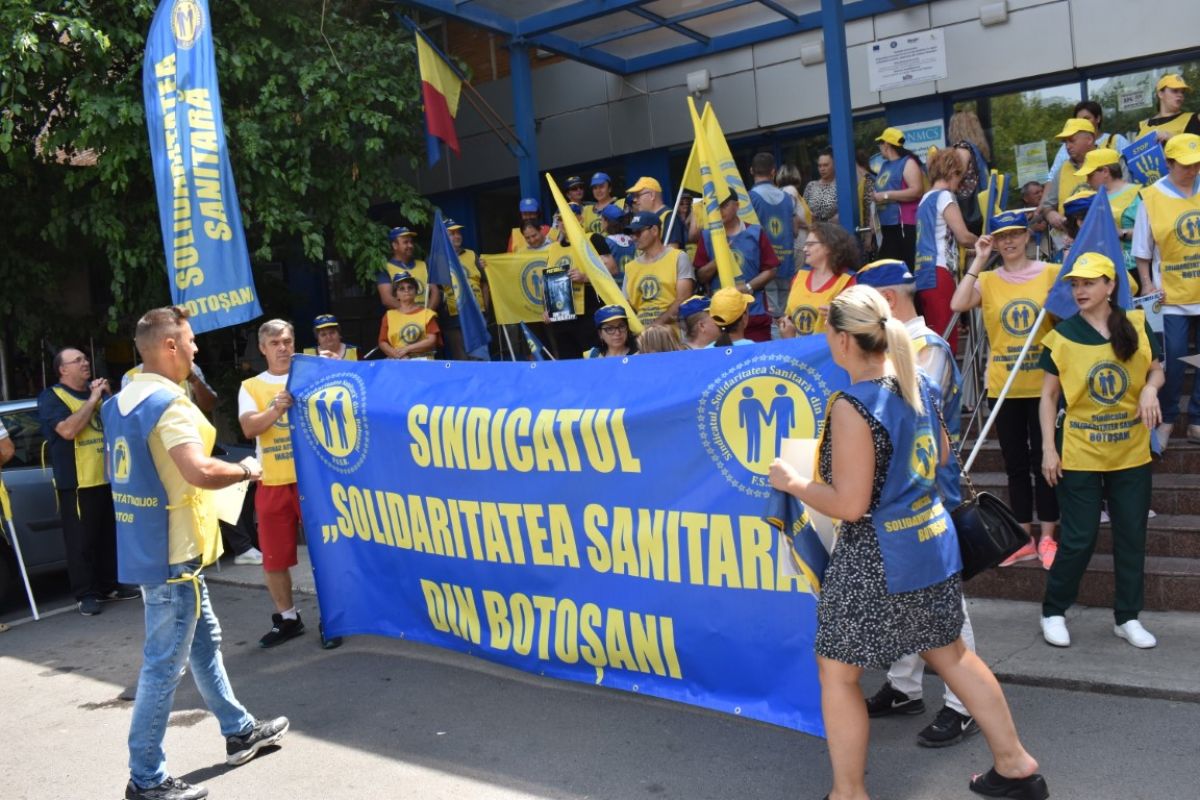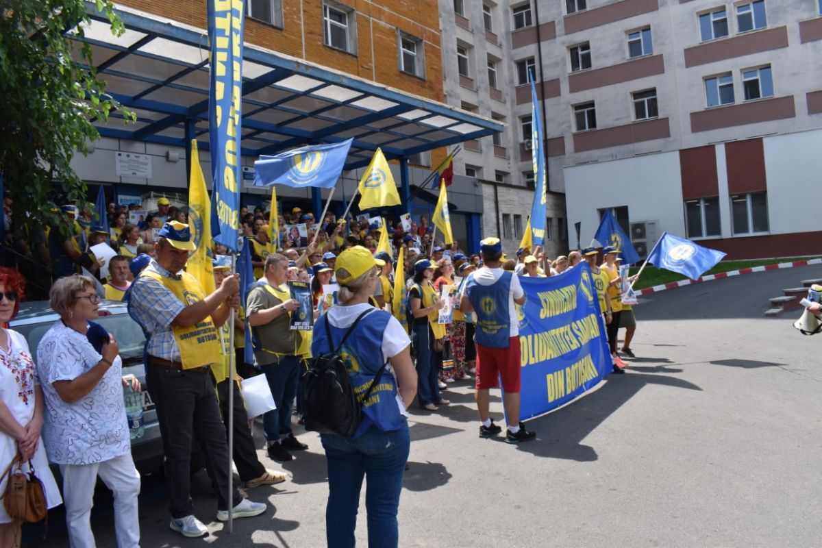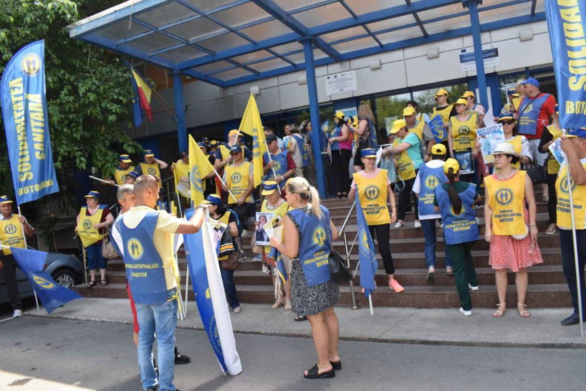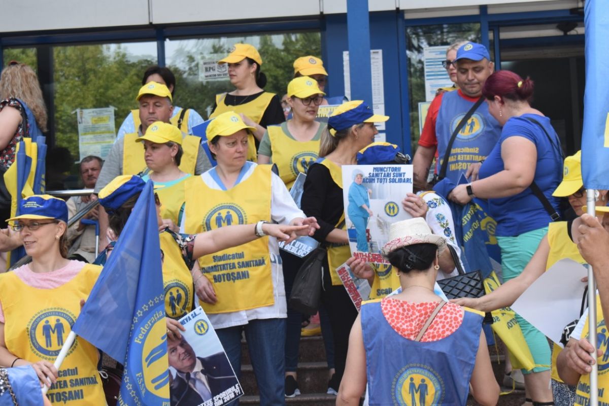 Peste 100 de salariați din sistemul sanitar botoșănean au pichetat astăzi Spitalul Județean Mavromati.