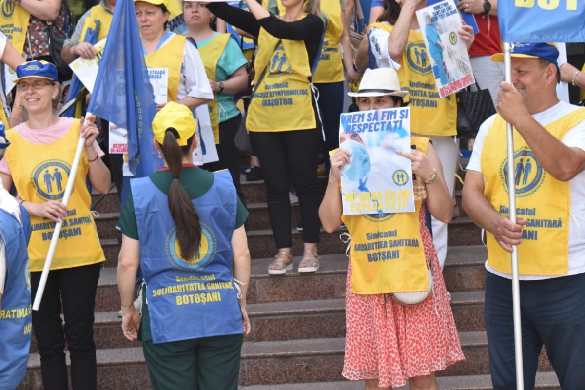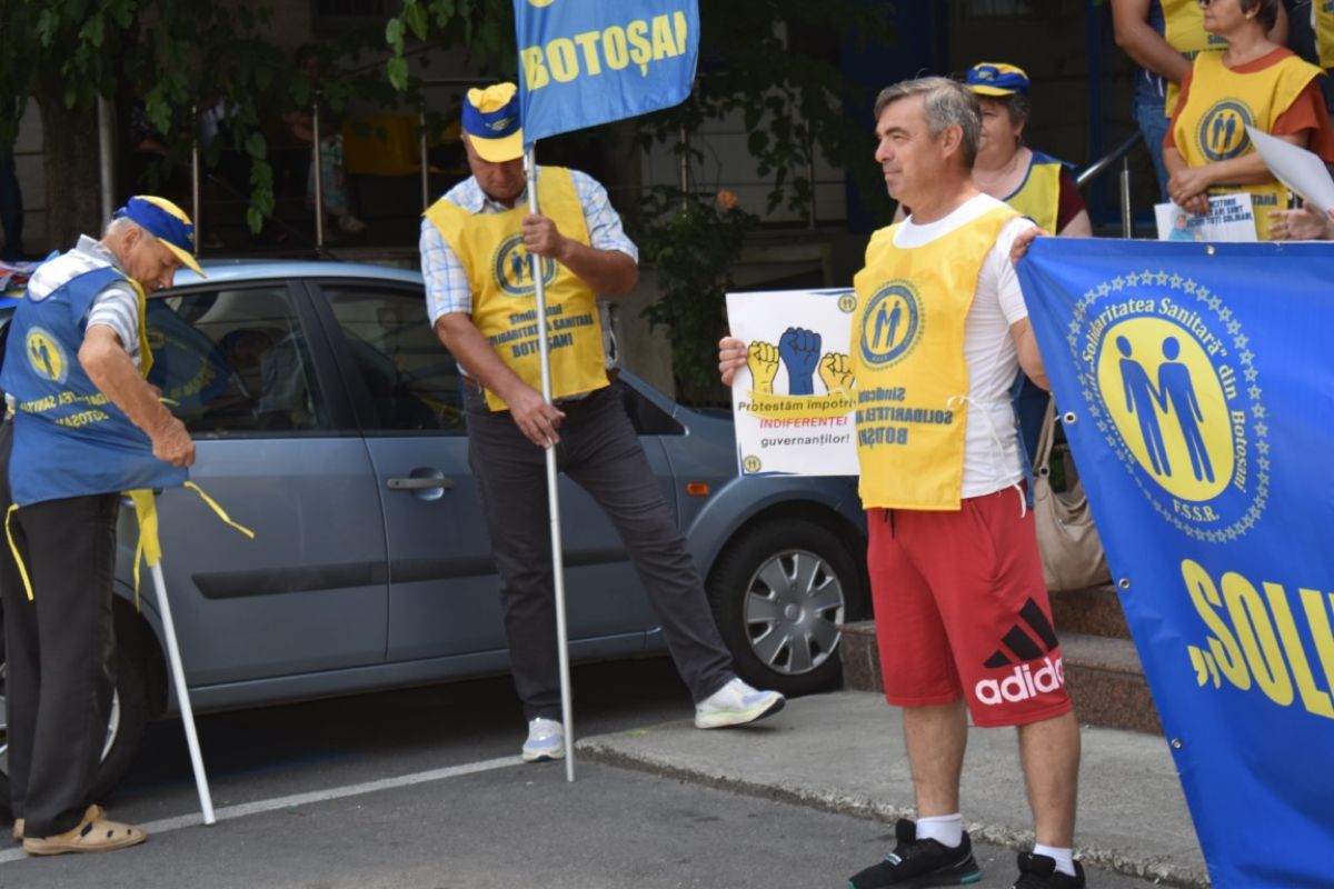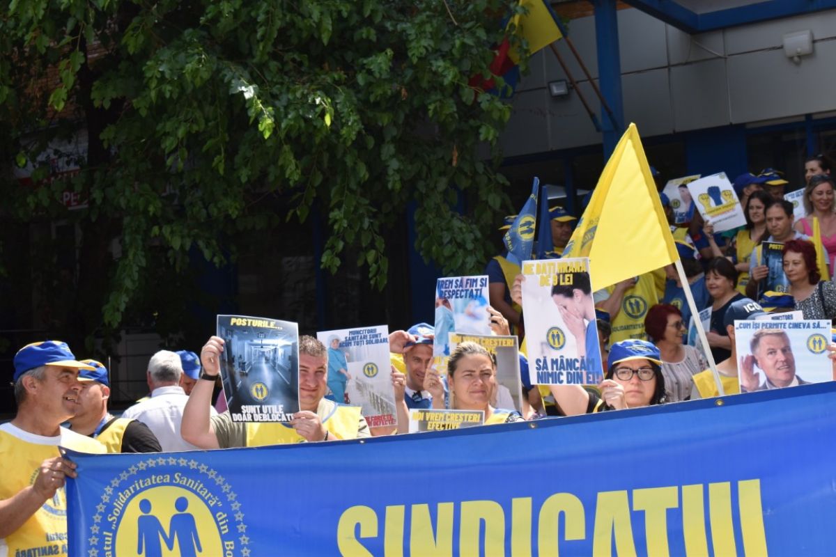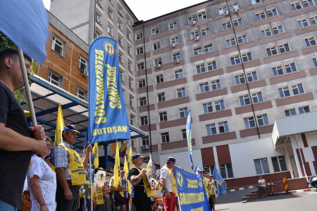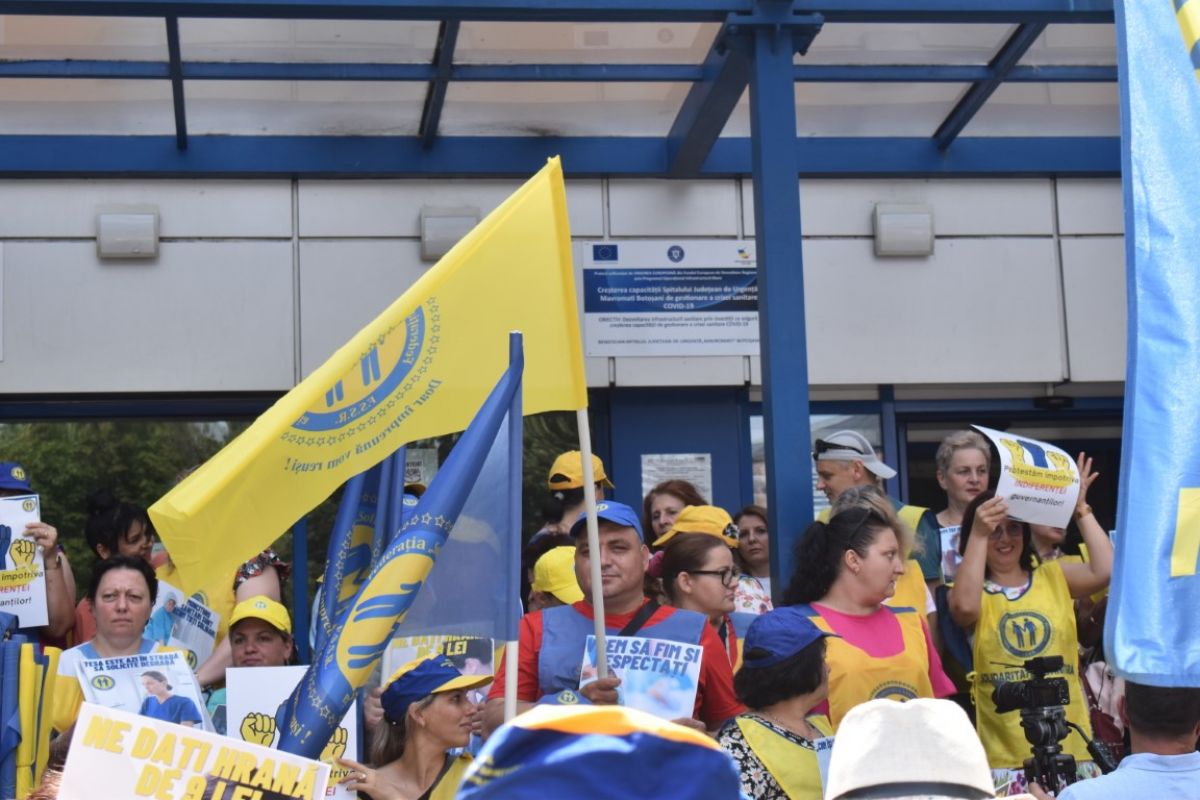 Peste 100 de salariați din sistemul sanitar botoșănean au pichetat astăzi Spitalul Județean Mavromati.