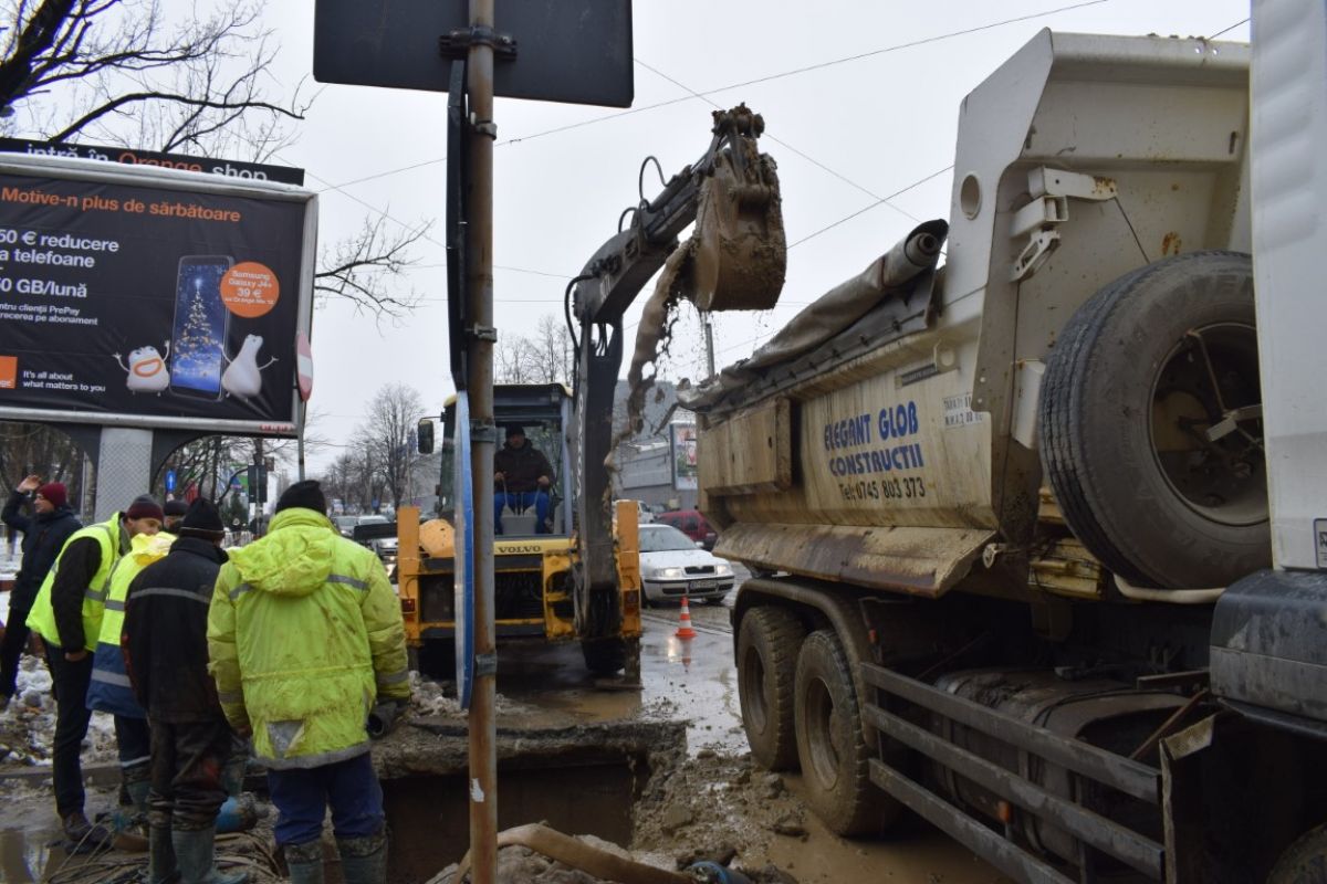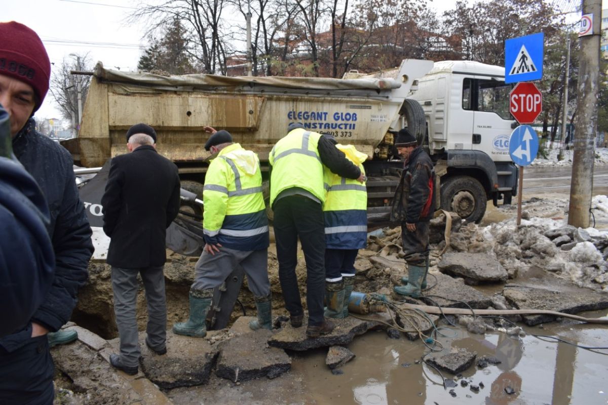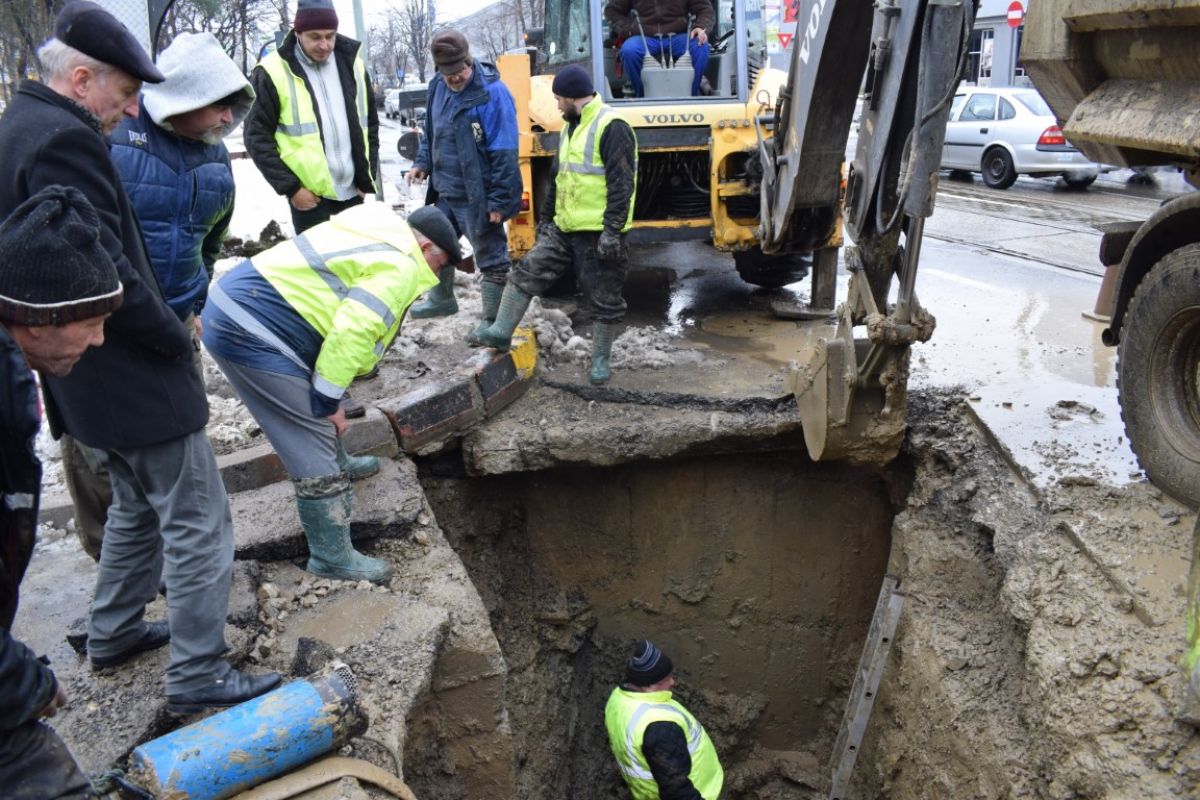 A fost nevoie să se sape aproximativ trei metri și jumătate în subteran până s-a ajuns la conducta cu probleme. Apa fiind oprită la acest moment nu se poate vedea unde este fisura. După ce au scos asfaltul din carosabil și molozul de dedesubt, misiunea celor de la Nova Apaserv este să curețe groapa și astfel să constate unde este problema.