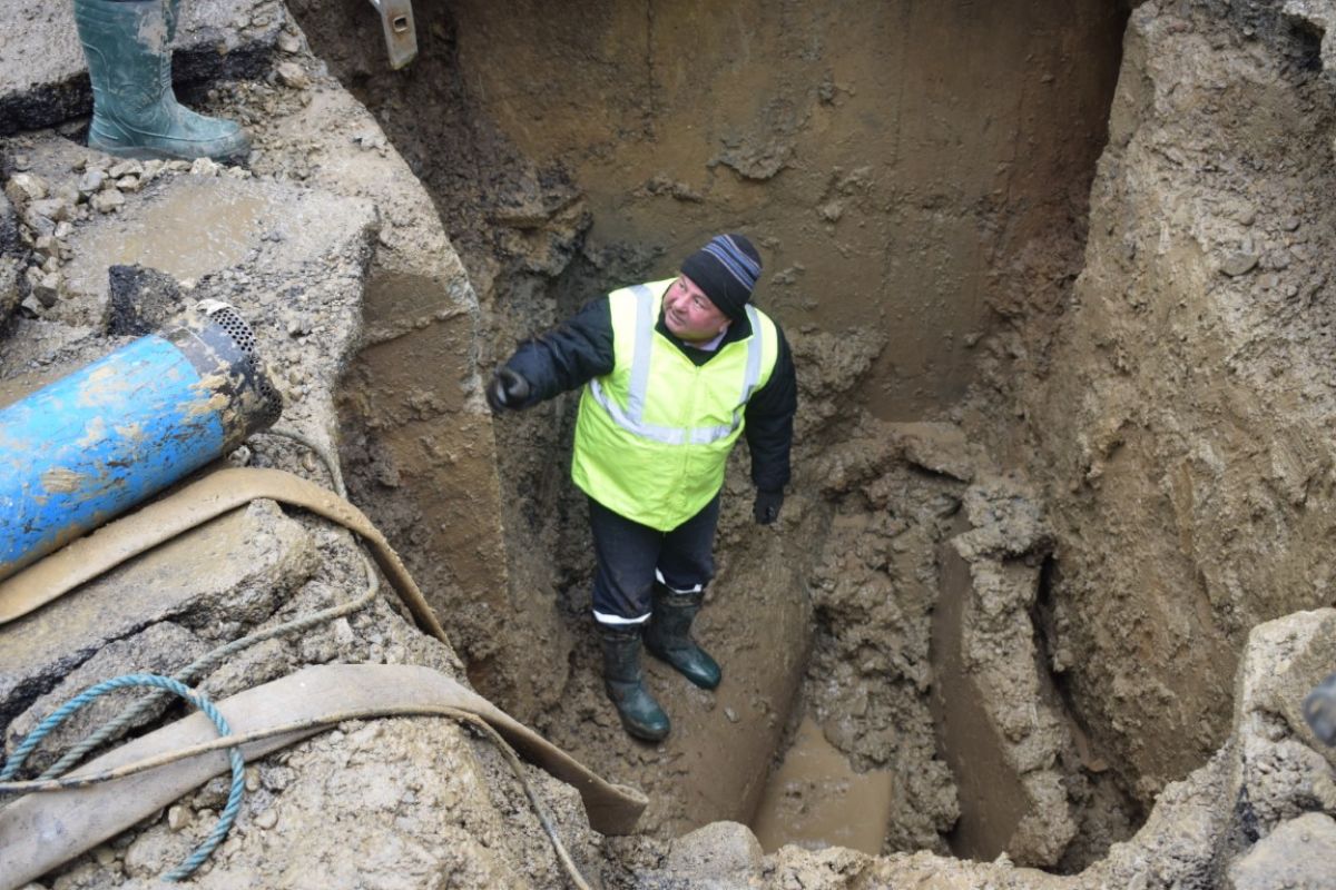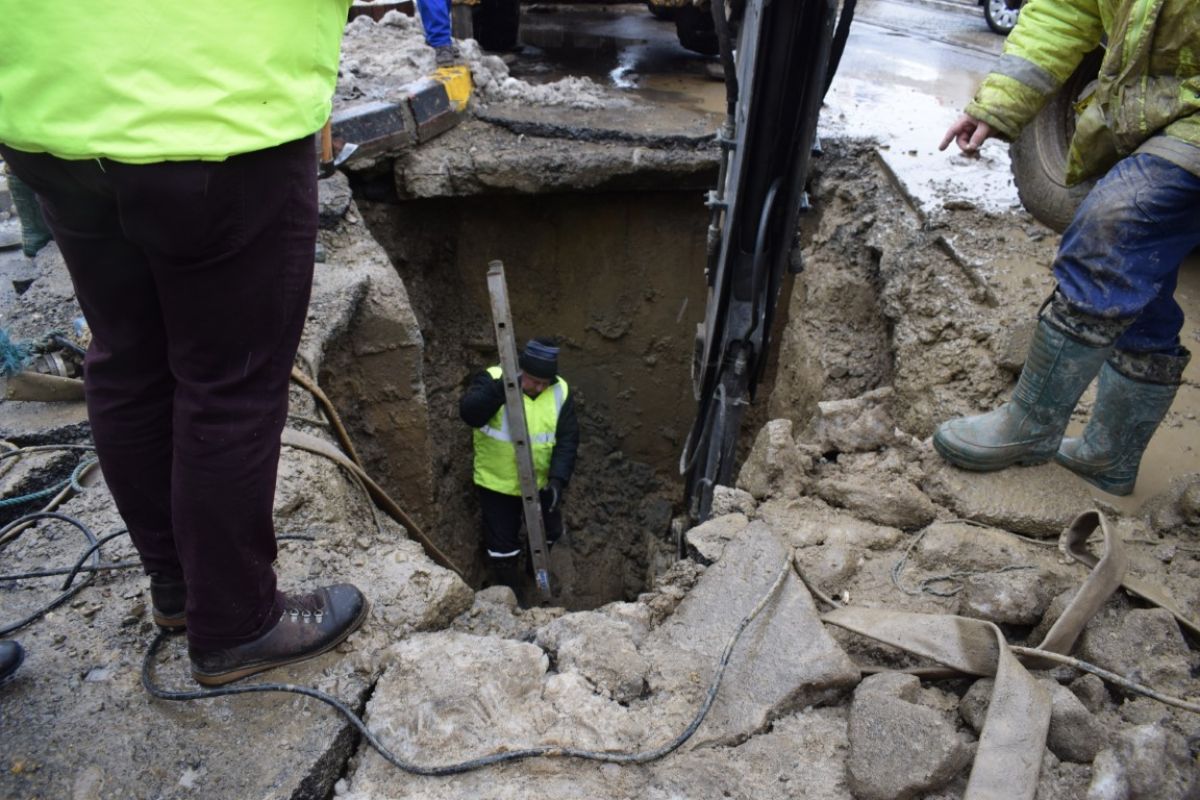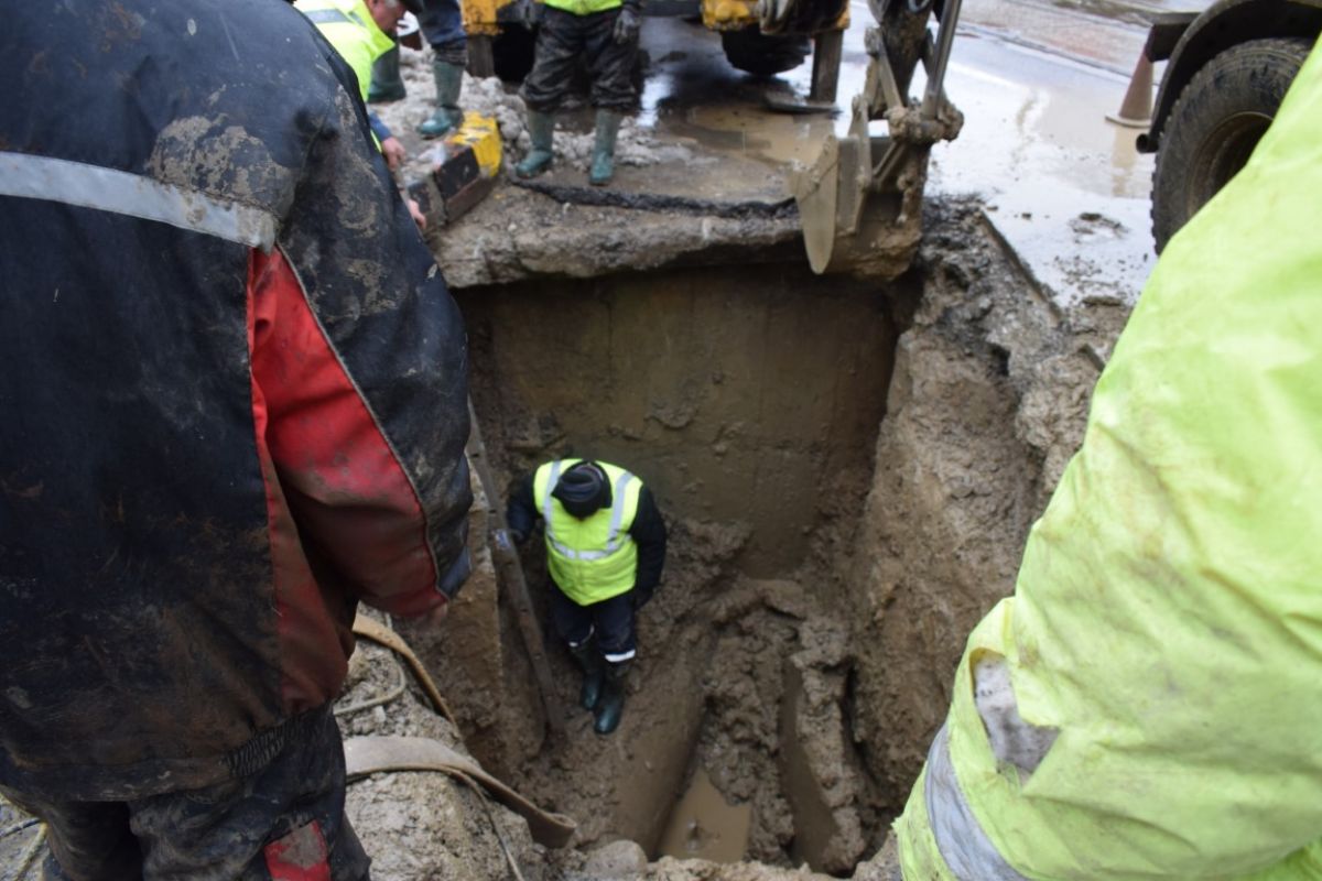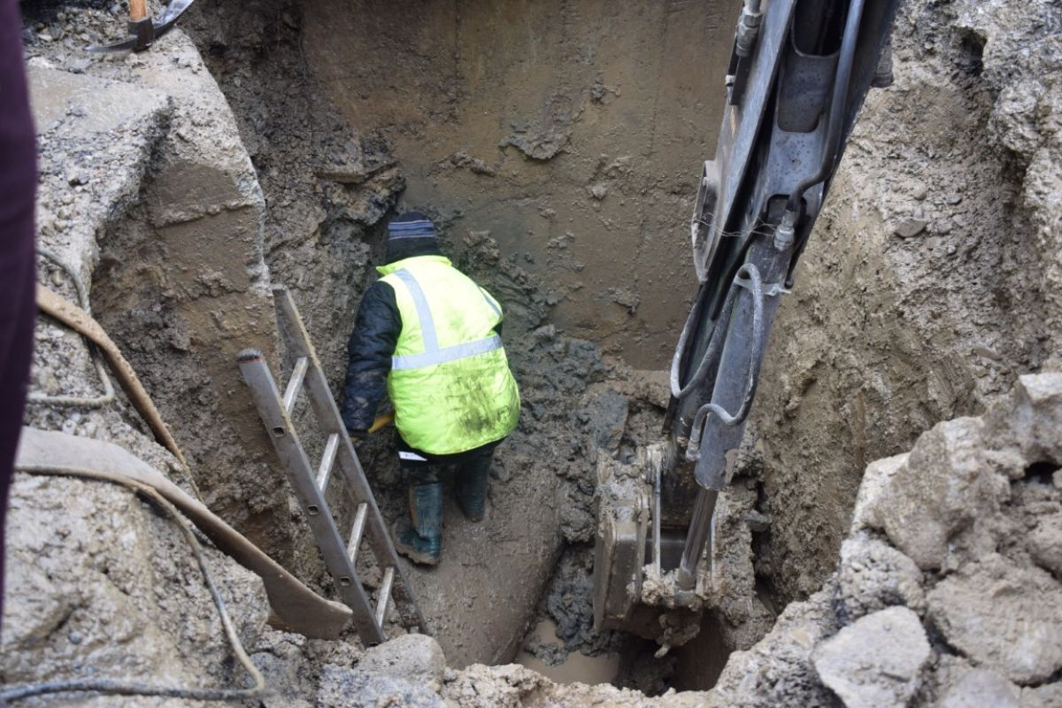 A fost nevoie să se sape aproximativ trei metri și jumătate în subteran până s-a ajuns la conducta cu probleme. Apa fiind oprită la acest moment nu se poate vedea unde este fisura. După ce au scos asfaltul din carosabil și molozul de dedesubt, misiunea celor de la Nova Apaserv este să curețe groapa și astfel să constate unde este problema.
