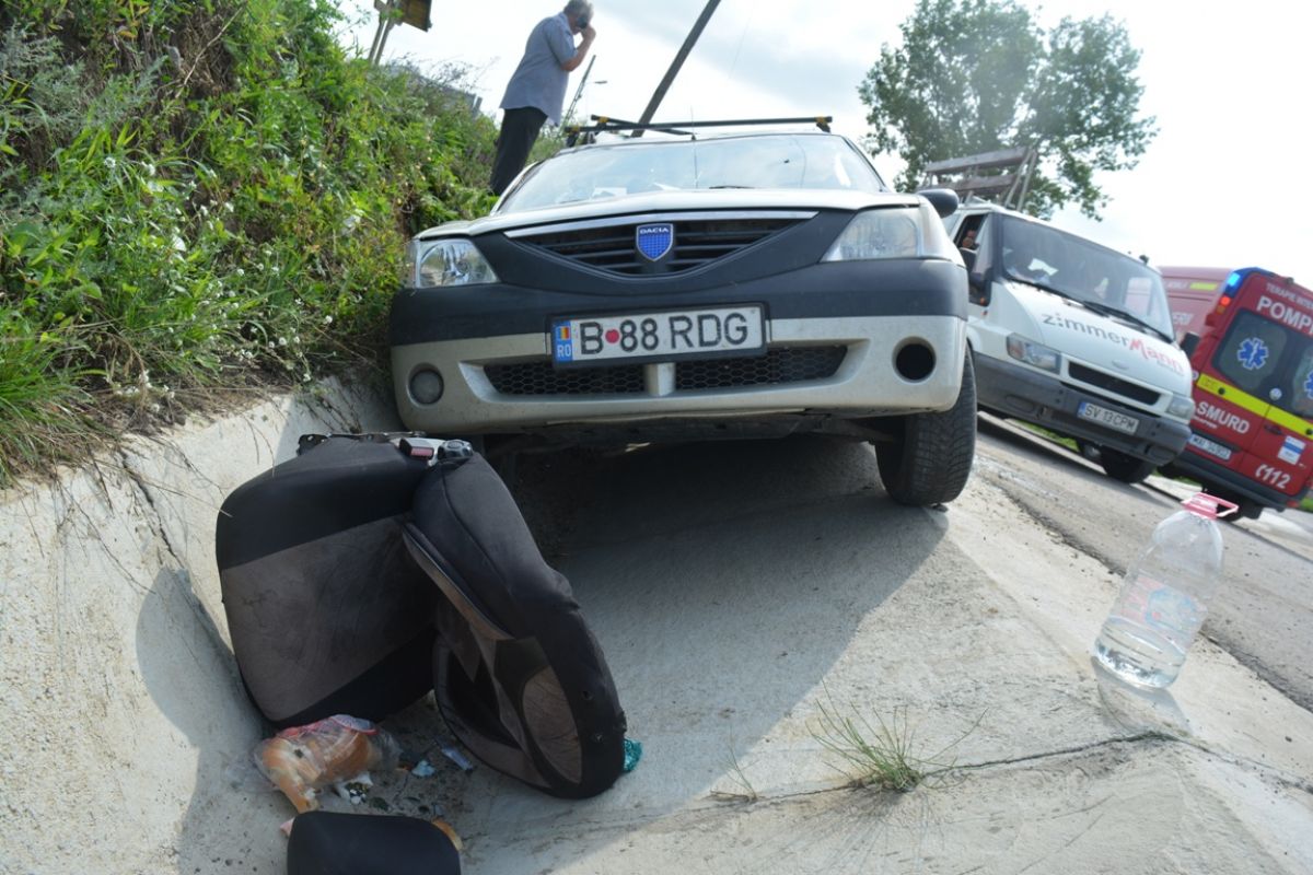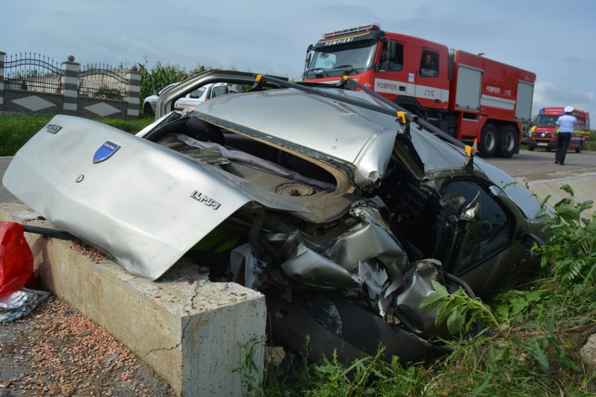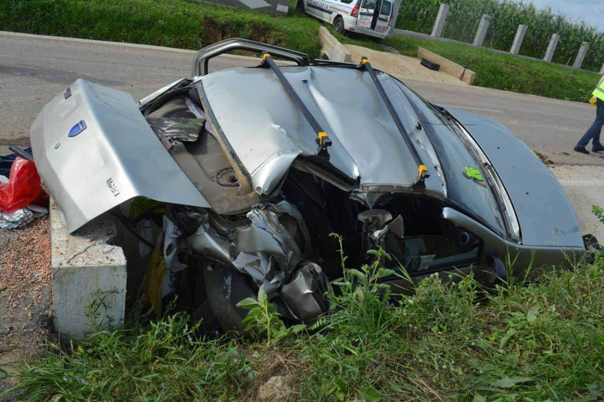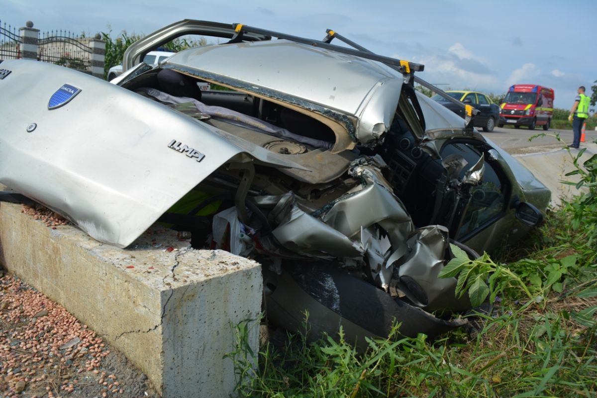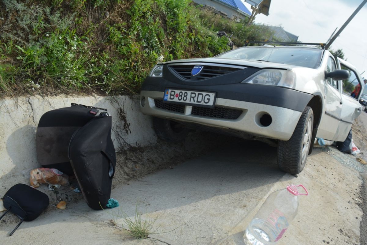 Automobilul a derapat, a lovit un cap de pod, s-a întors la 180 de grade și a fost proiectat în șanț.