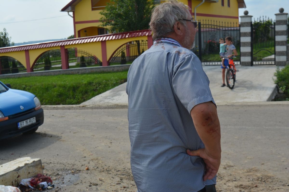 Cu mai multe pete de sânge, acesta a rămas totuși la locul evenimentului rutier.