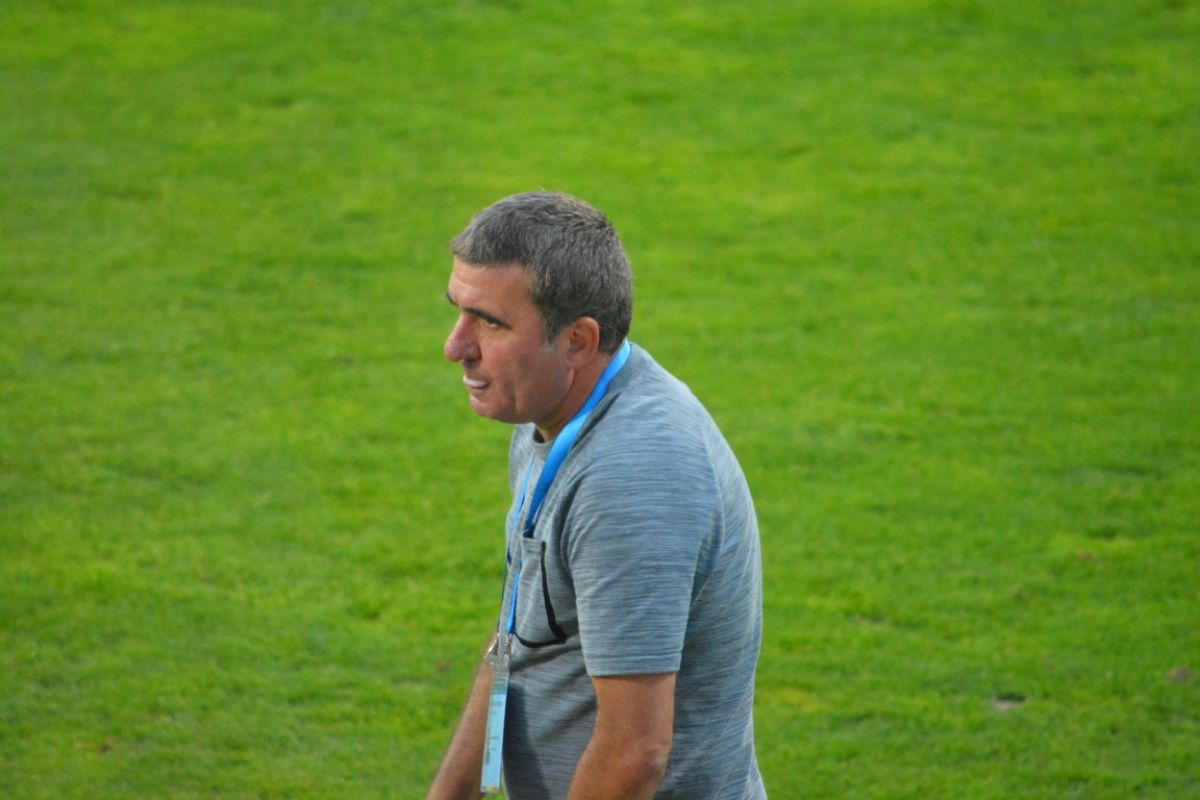 Gheorghe Hagi a protestat, s-a aşezat în faţa băncii, iar s-a ridicat şi a vociferat la adresa tuşierului şi a arbitrului de rezervă.