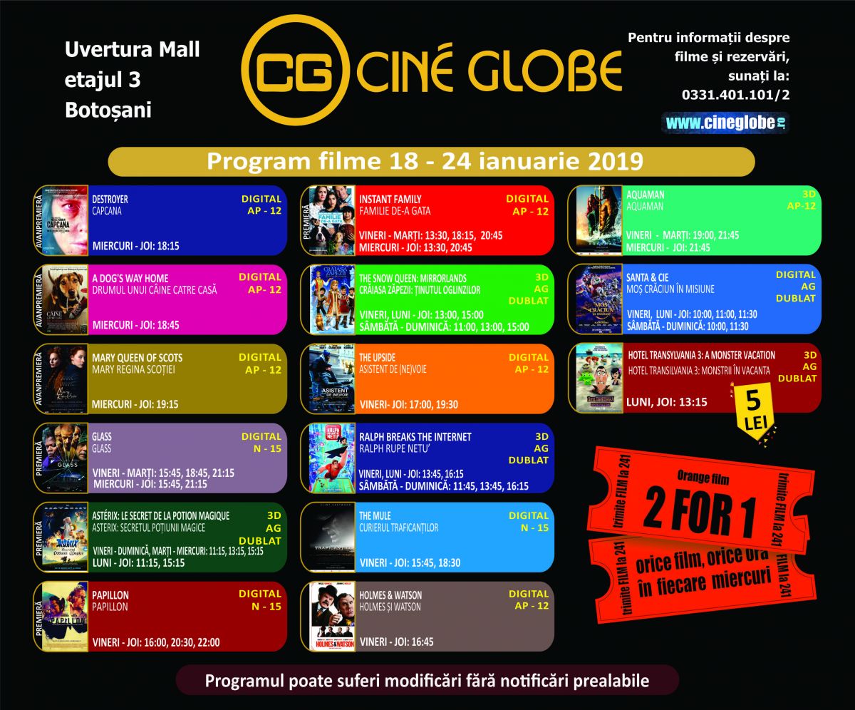 Vezi mai jos PROGRAMUL complet al filmelor care rulează la Cine Globe
