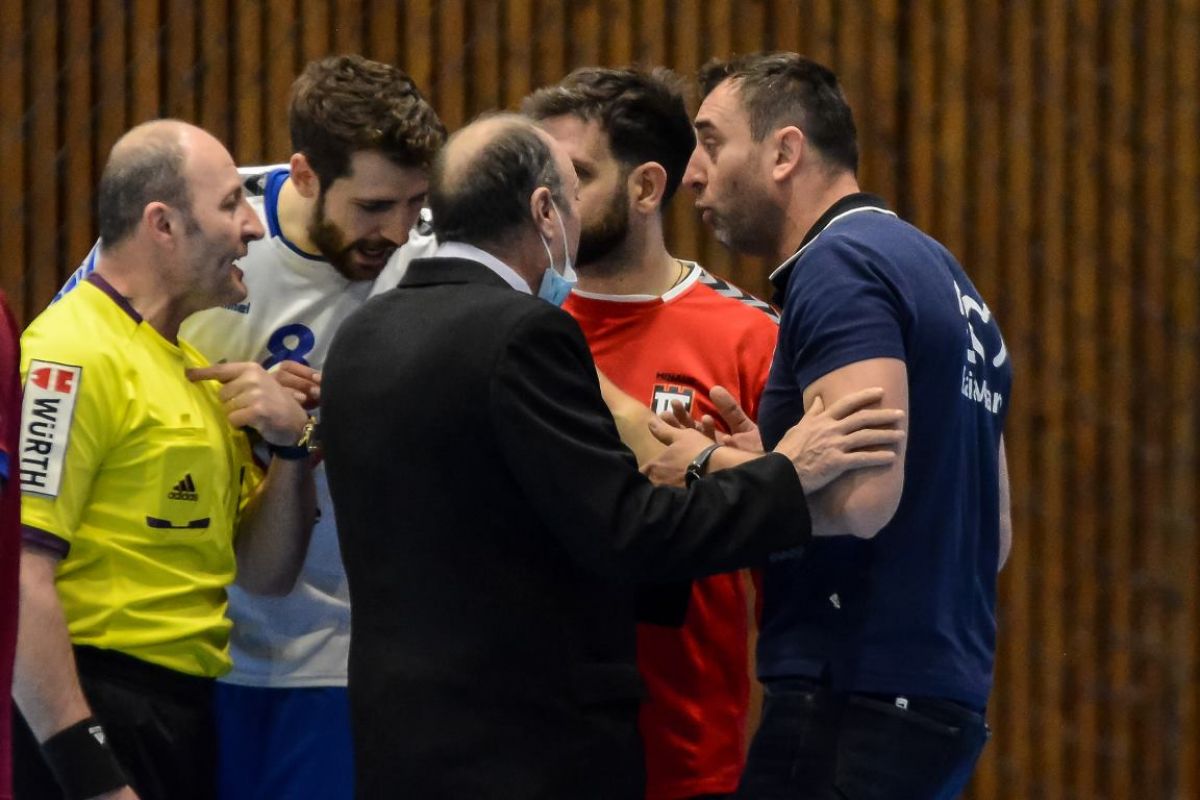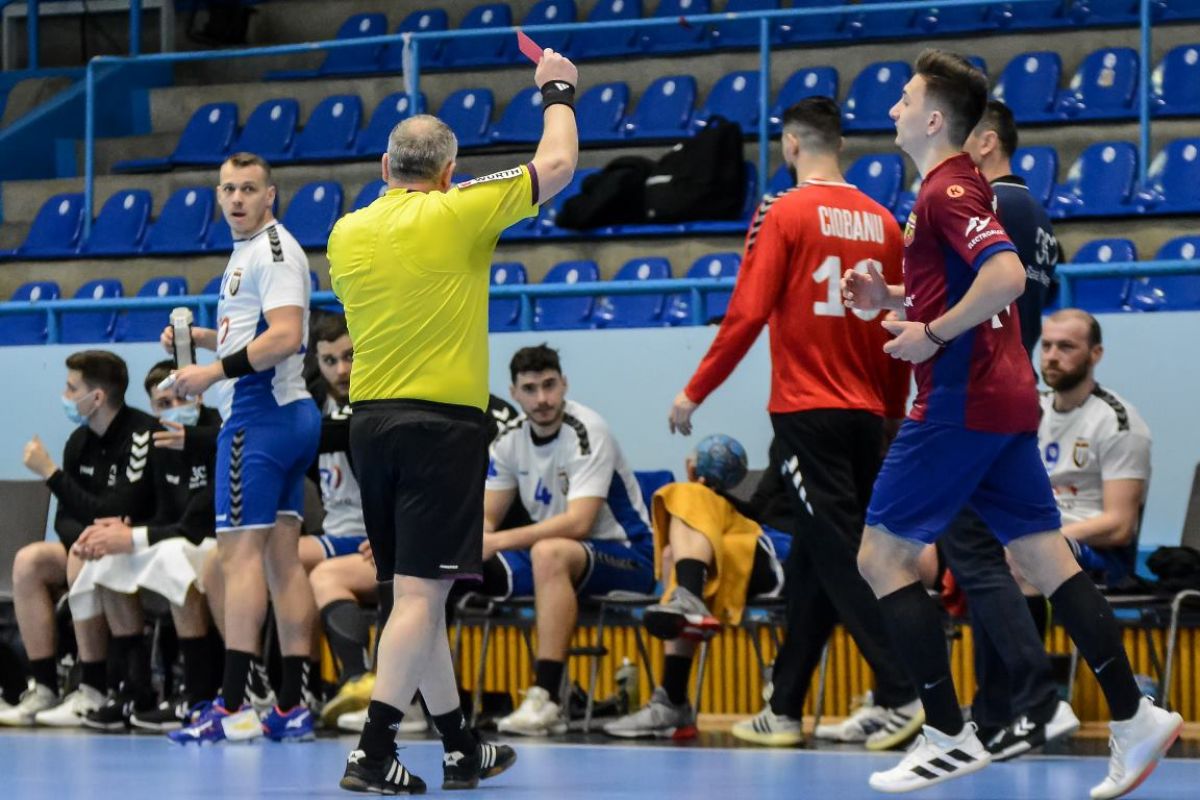 A executat Lazurcă, de asemenea imprudent, lovindu-l cu mingea în față pe celălalt portar al lui Minaur, Răzvan Pop. Arbitrii i-au arătat roșu și handbalistului botoșănean, însă portarul gazdelor a protestat și a fost eliminat două minute.