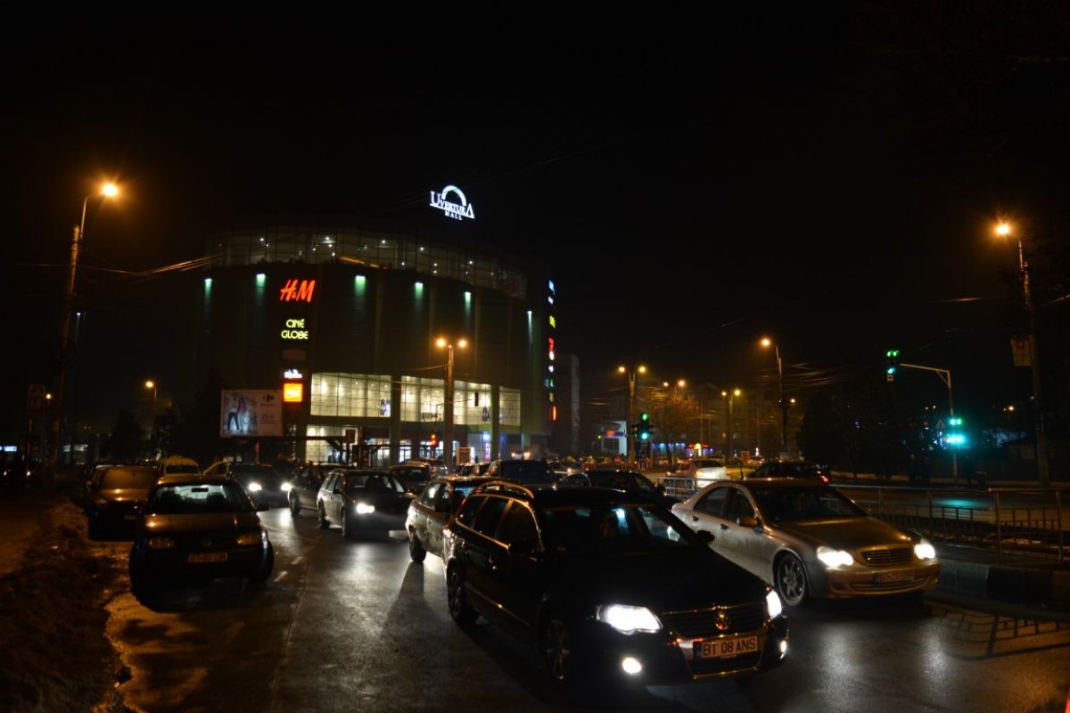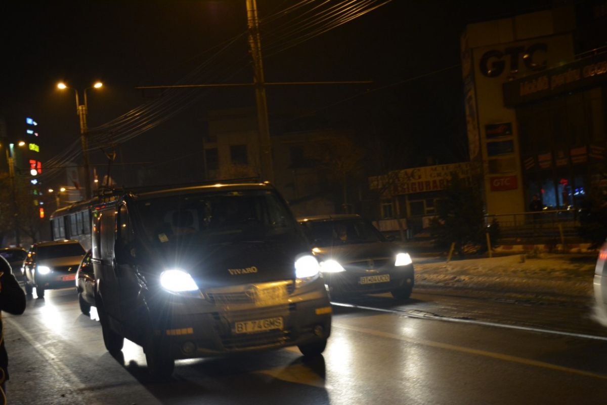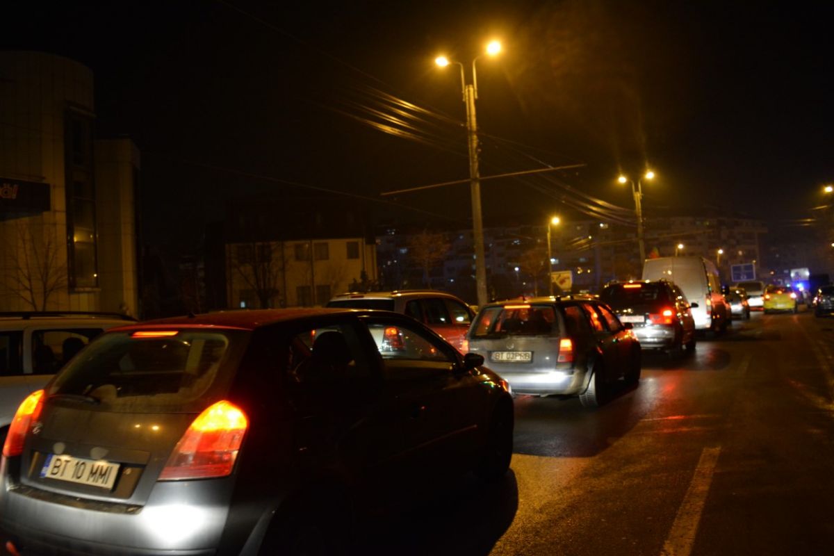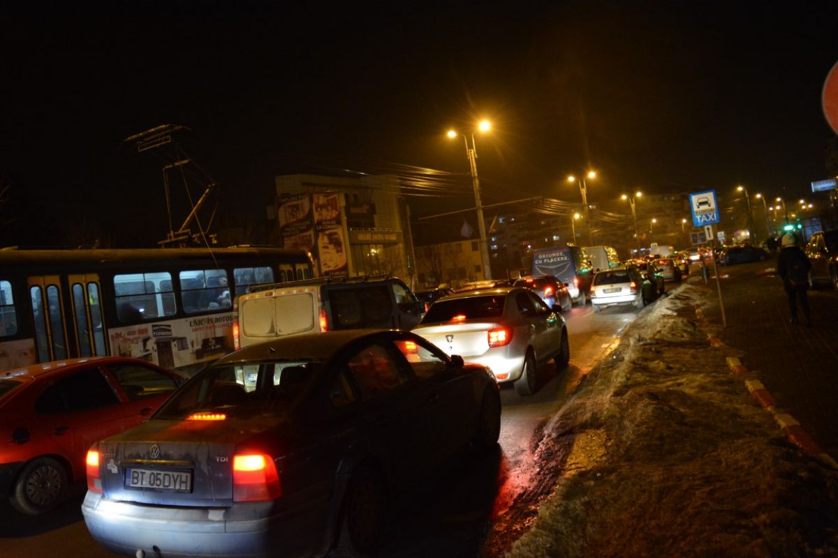 Zeci de automobile erau blocate în jurul orei 19:00 pe principala arteră de circulaţie a municipiului Botoşani.