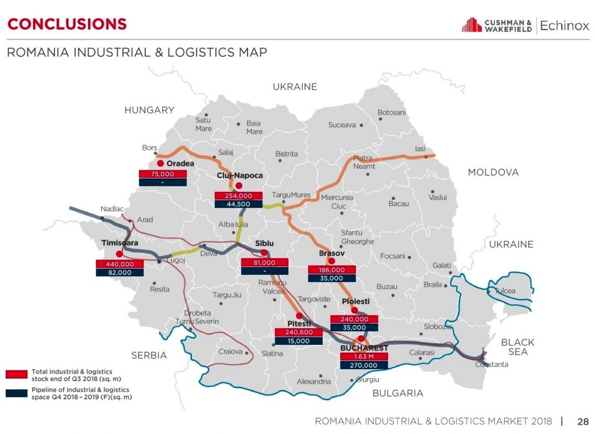 Piața spațiilor industriale și logistice din România traversează cea mai bună perioadă din istorie, atât din prisma cererii, cât și a ofertei, dezvoltarea fiind concentrată în orașe mari cu acces la cel puțin o autostradă care facilitează transportul și distribuția mărfurilor într-un timp mai scurt și cu costuri mai reduse către un număr mai mare de clienți.
