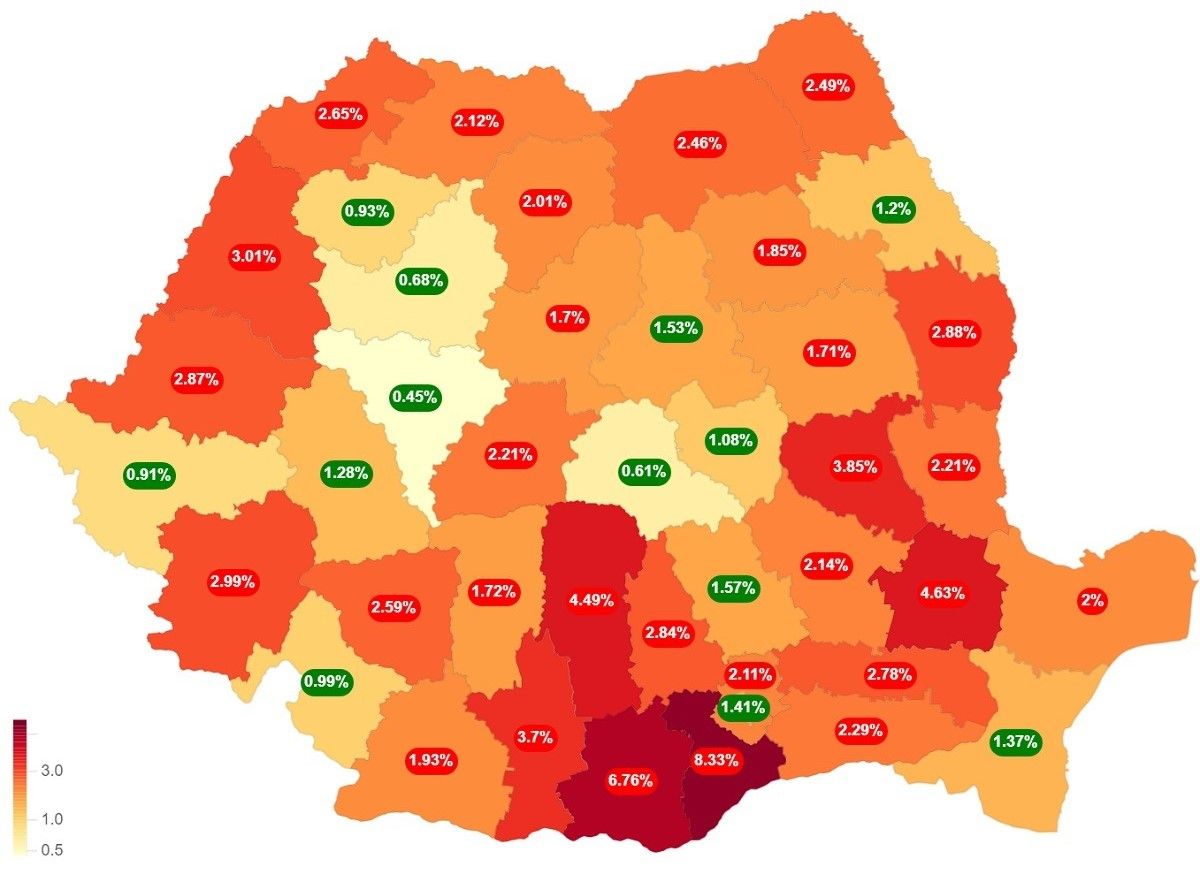 La Botoșani, procentul ar fi de 2,49%, peste media națională.