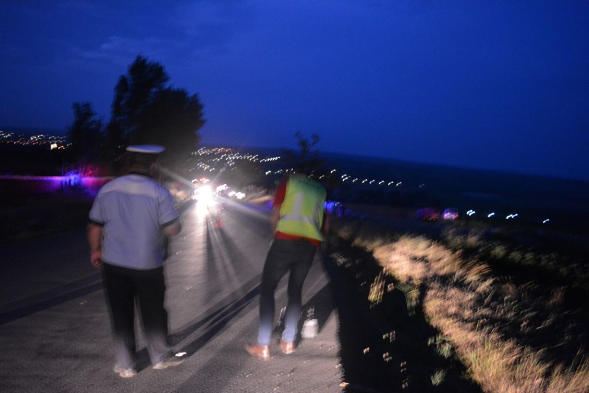 Au fost introduși într-un soi de saci și lăsați pe marginea drumului. În jur lor criminaliștii luminează cu o lampă locul accidentului. Câteva zeci de persoane privesc de pe margine imaginea dezastrului lăsat de autoturismul care le-a adus moartea celor doi. (G.E., S.B.)