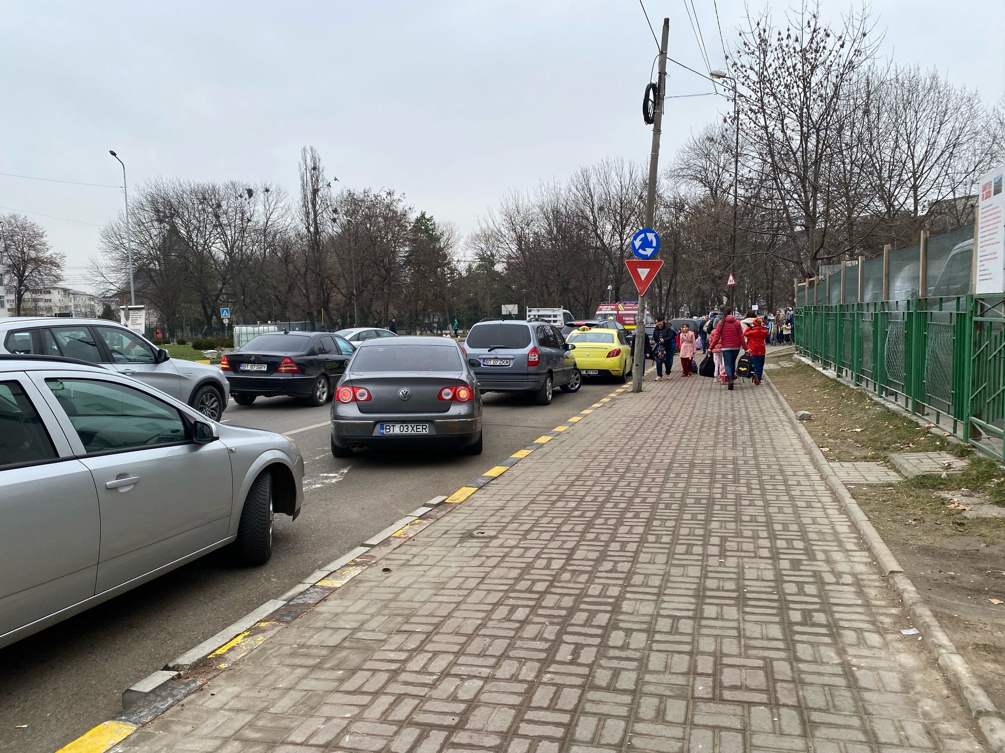 Zona din fața Școlii Gimnaziale „Elena Rareș” din Botoșani, atât trotuarul cât și carosabilul a devenit un adevărat haos zilnic.