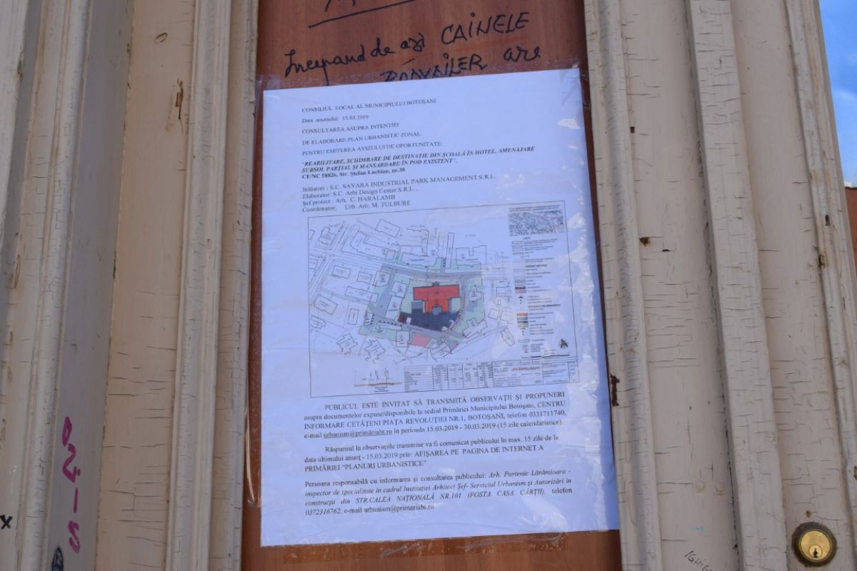 „Zilele trecute a intrat în dezbaterea publică de dinaintea emiterii avizului de oportunitate un obiectiv important din municipiul Botoșani, fosta Școală nr.4 de pe strada Ștefan Luchian, nr. 38, pe care actualul proprietar dorește să o transforme în hotel”,