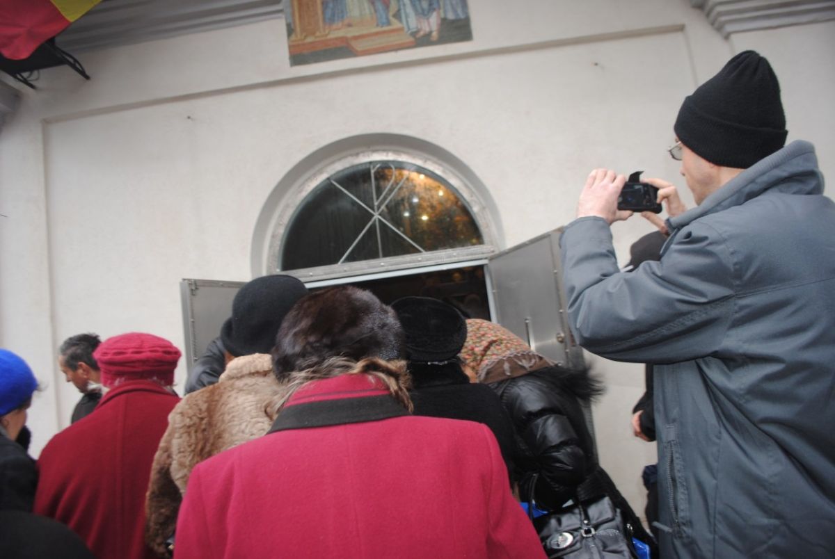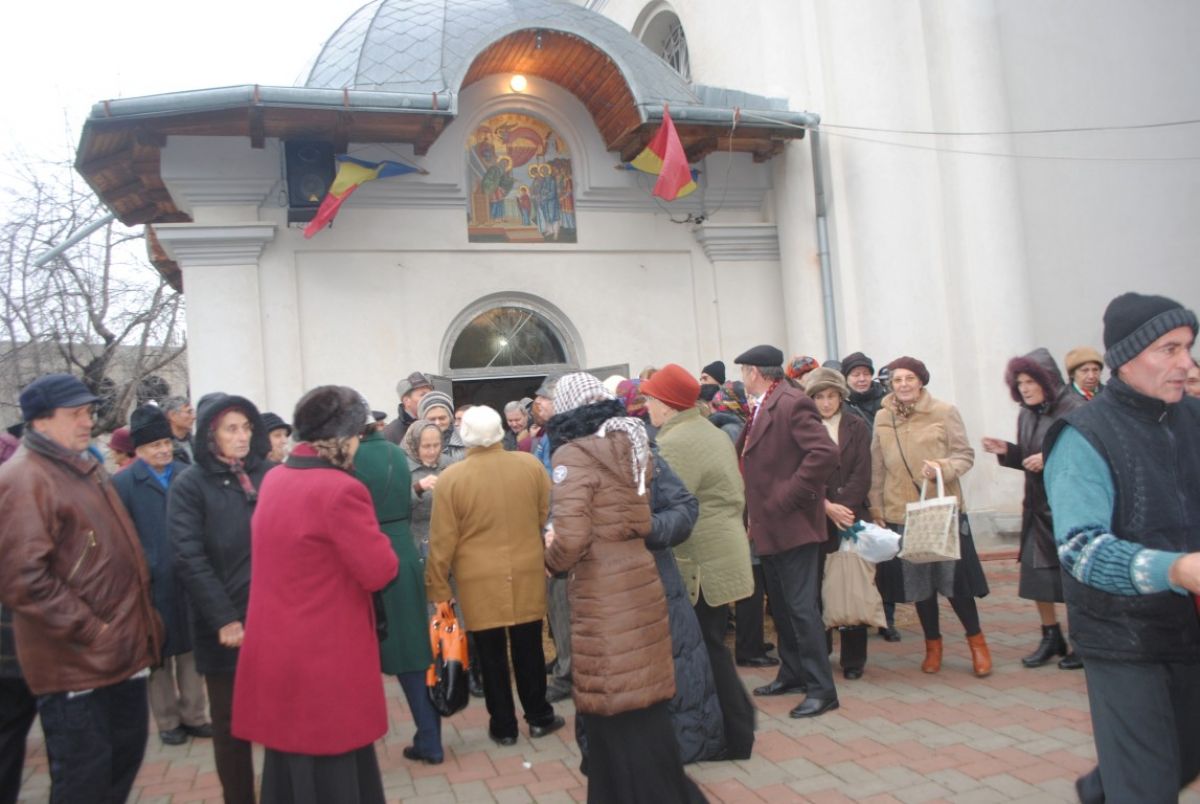 La ieșirea din lăcașul de cult, credincioșii au primit câte o iconiță și câte un pachețel cu anafură.