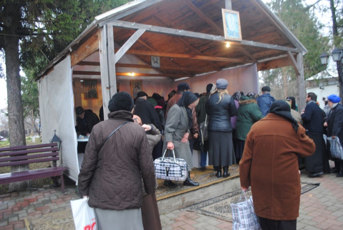Reprezentanții Bisericii au oferit de pomană ciorbă de fasole, sarmale de post, pește și câte un pahar de vin. Alimentele pregătite au fost oferite credincioșilor după rugăciunea de mulțumire oficiată de un preot.