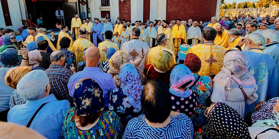 Hram cu numeroși credincioși la Biserica Pacea, slujbele oficiate de un sobor de preoți