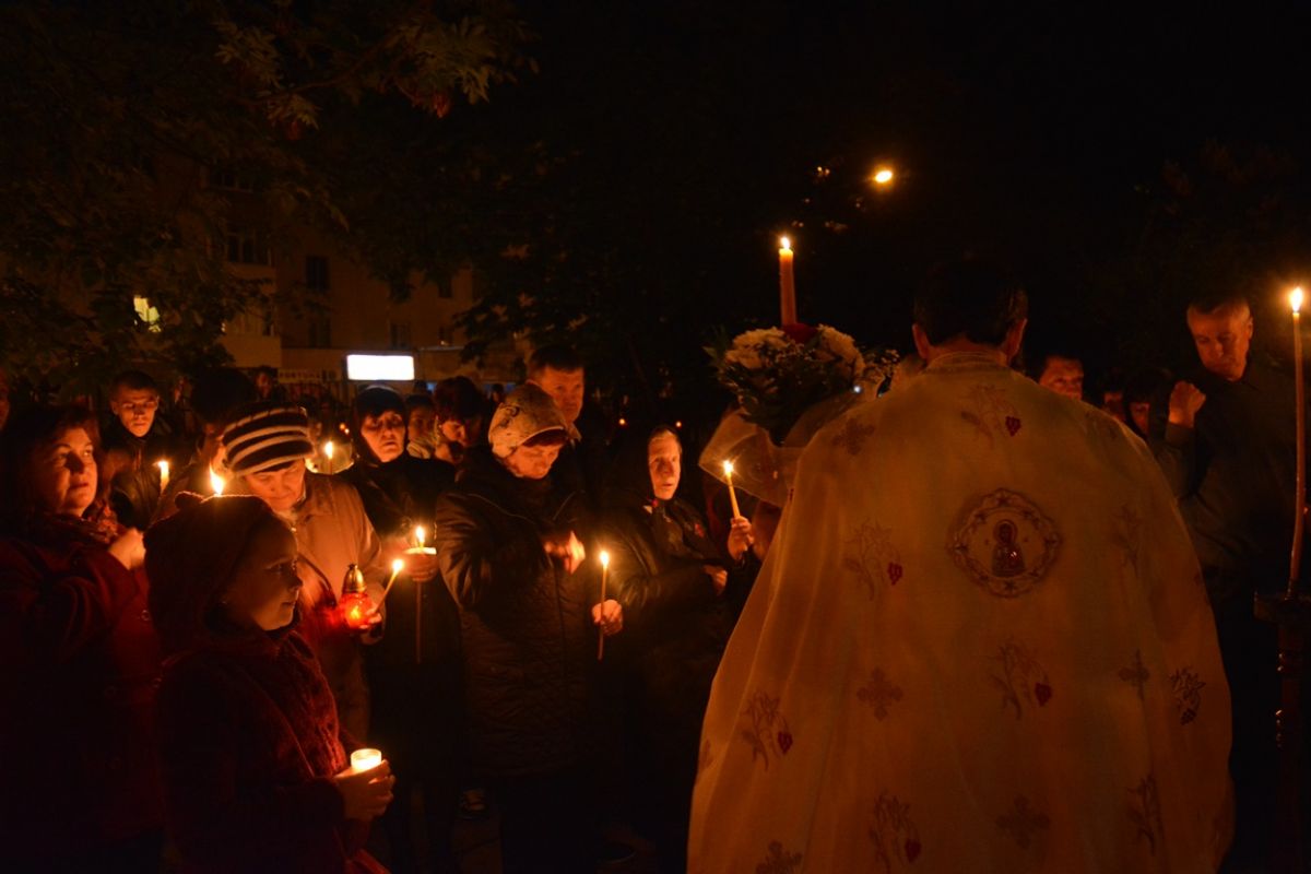 Preotul iese afară și citește din Sfânta Evanghelie în fața crucii din curtea lăcașului de cult. Glasul îi răsună în tot cartierul Bucovina și ca la un semnal divin încetează și vorbăraia, forfota, scârțâiturile de roți de după gard. Cu Lumina în mâini se întoarce spre mulțime și vestește: ”Hristos a Înviat”, iar credincioșii îi răspund într-un glas: ”Adevărat a Înviat”. Fețele le sunt luminate și... luminoase. Și apoi cântă împreună... ”Hristos a Înviat din morți! / Cu moartea pe moarte călcând / Și celor din morminte / Pace dăruindu-le”.