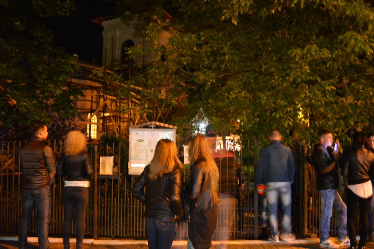 Sute de oameni se îndreaptă tăcuți cu pași grăbiți spre Biserica Sfinții Trei Ierarhi și pe traseu sunt ”întâmpinați” de grupuri-grupuri de tineri. La un bloc din apropierea lăcașului de cult fete și băieți, deopotrivă adolescenți și trecuți de majorat, se îngrămădesc la o bere. Peste drum de biserică alt grup... la o țigară. Sau mai multe. Chioșcul non-stop este și el luat cu asalt. Când să se facă 12 noaptea din stradă se aud și ceva claxoane. Fiecare cu bucuria lui...