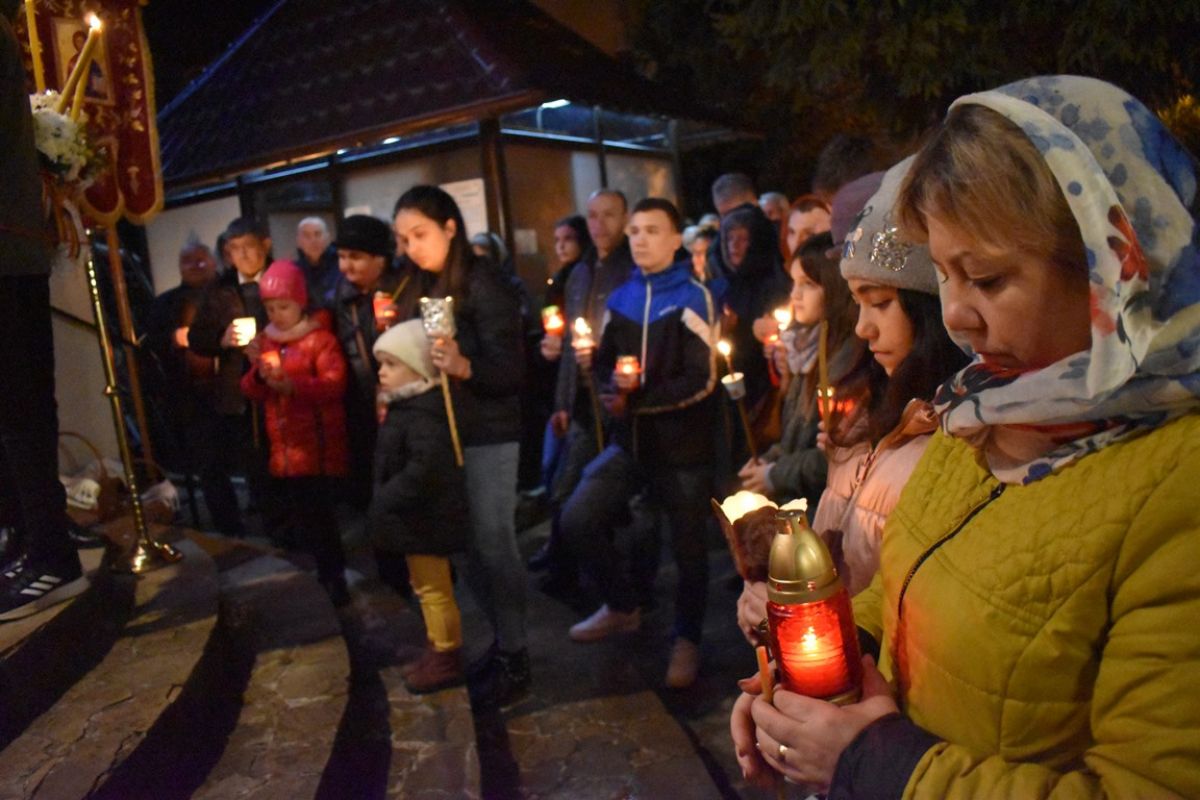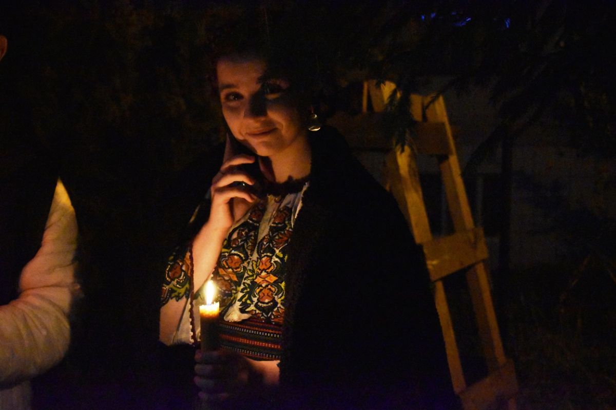 Unul după altul becurile din curte s-au stins până ce a apărut preotul paroh Dumitru Butnariuc care a îndemnat mulțimea: ”Veniți de primiți Lumină!”