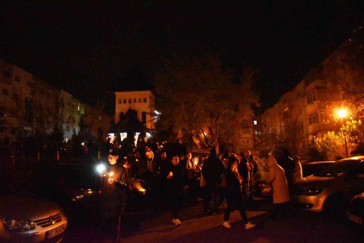 Cu un sfert de oră înaintea miezului nopții, curtea Bisericii Sfântul Cuvios Antonie cel Mare din municipiul Botoșani era deja plină de credincioși. Printre sute și sute de oameni se putea vedea o singură persoană cu mască, parcă singura amintire din vremurile atât de apropiate, dar pe care le vrem cât mai îndepărtate.