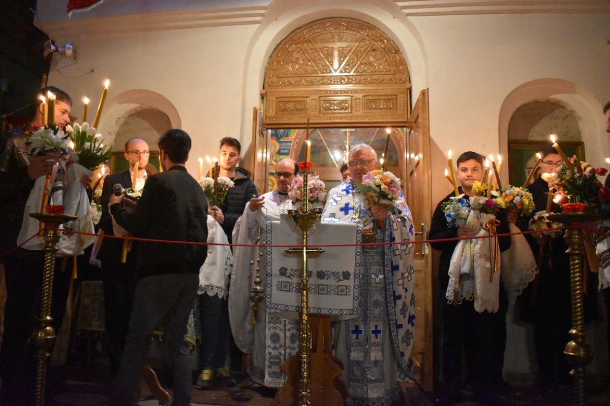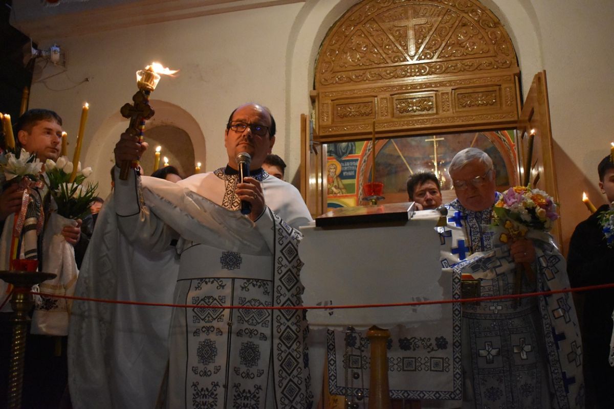 S-a citit din Sfânta Evanghelie, după care preotul a vestit: ”Hristos a Înviat!”, iar cei prezenți i-au răspuns într-un glas: ”Adevărat a Înviat!”.