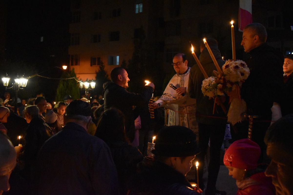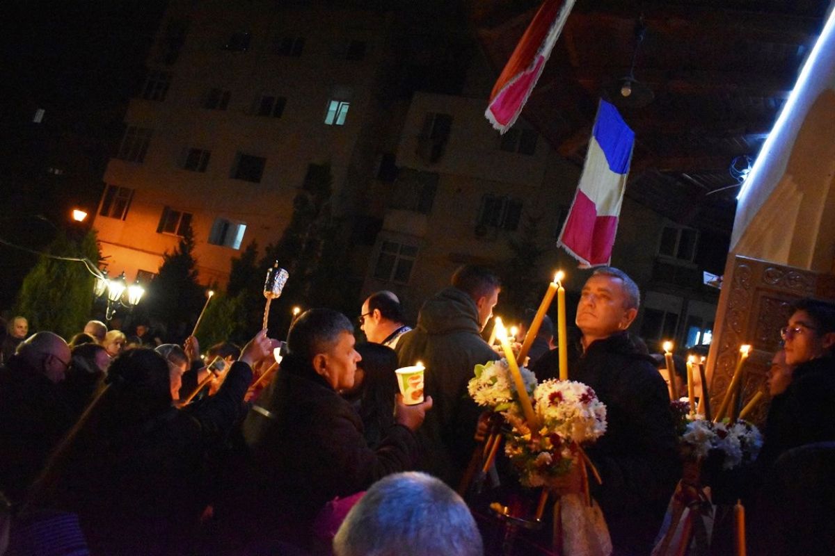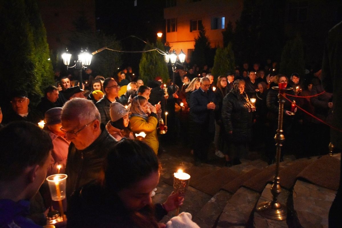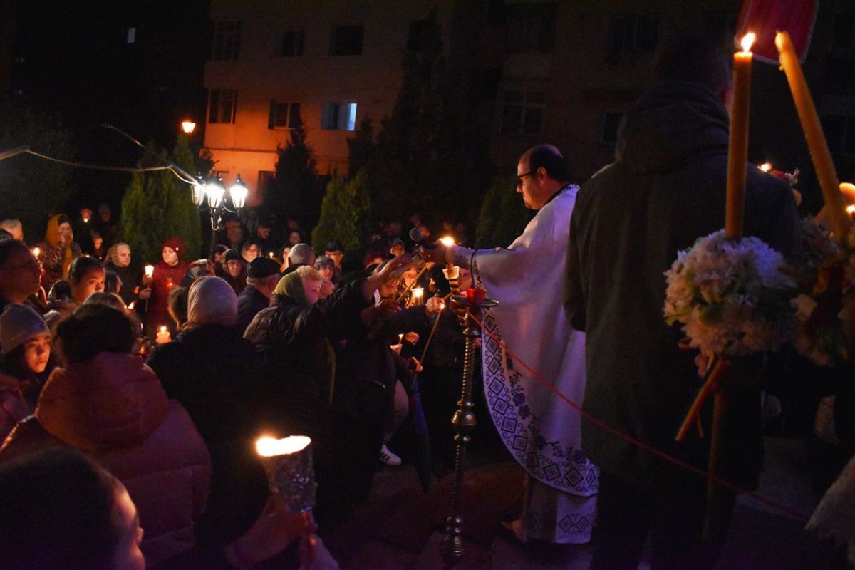 Și rând pe rând credincioșii și-au aprins lumânările.