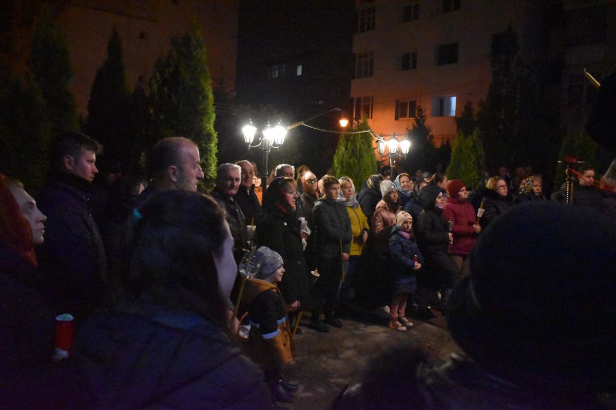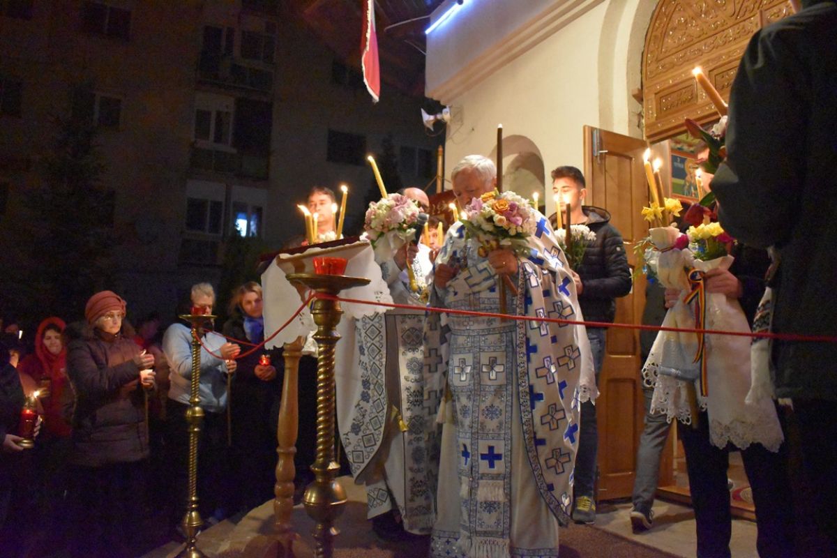 Cu pași mici și înceți, odată cu apropierea orei 0:00, enoriașii s-au tot apropiat de scările lăcașului de cult, acolo unde doi preoți au început oficierea.