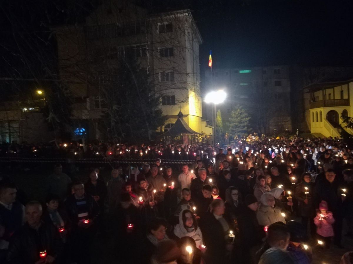 De altfel, curtea bisericii s-a dovedit a fi neîncăpătoare pentru enoriașii veniți la biserica de pe Calea Națională pentru a lua Lumina Sfântă. Credincioșii au stat și pe lângă blocurile din apropierea bisericii. În momentul când părintele protopop Lucian Leonte a ieșit în fața mulțimii cu îndemnul: „Veniți de luați Lumină”, enoriașii s-au apropiat pentru a lua Lumina care aduce liniște.