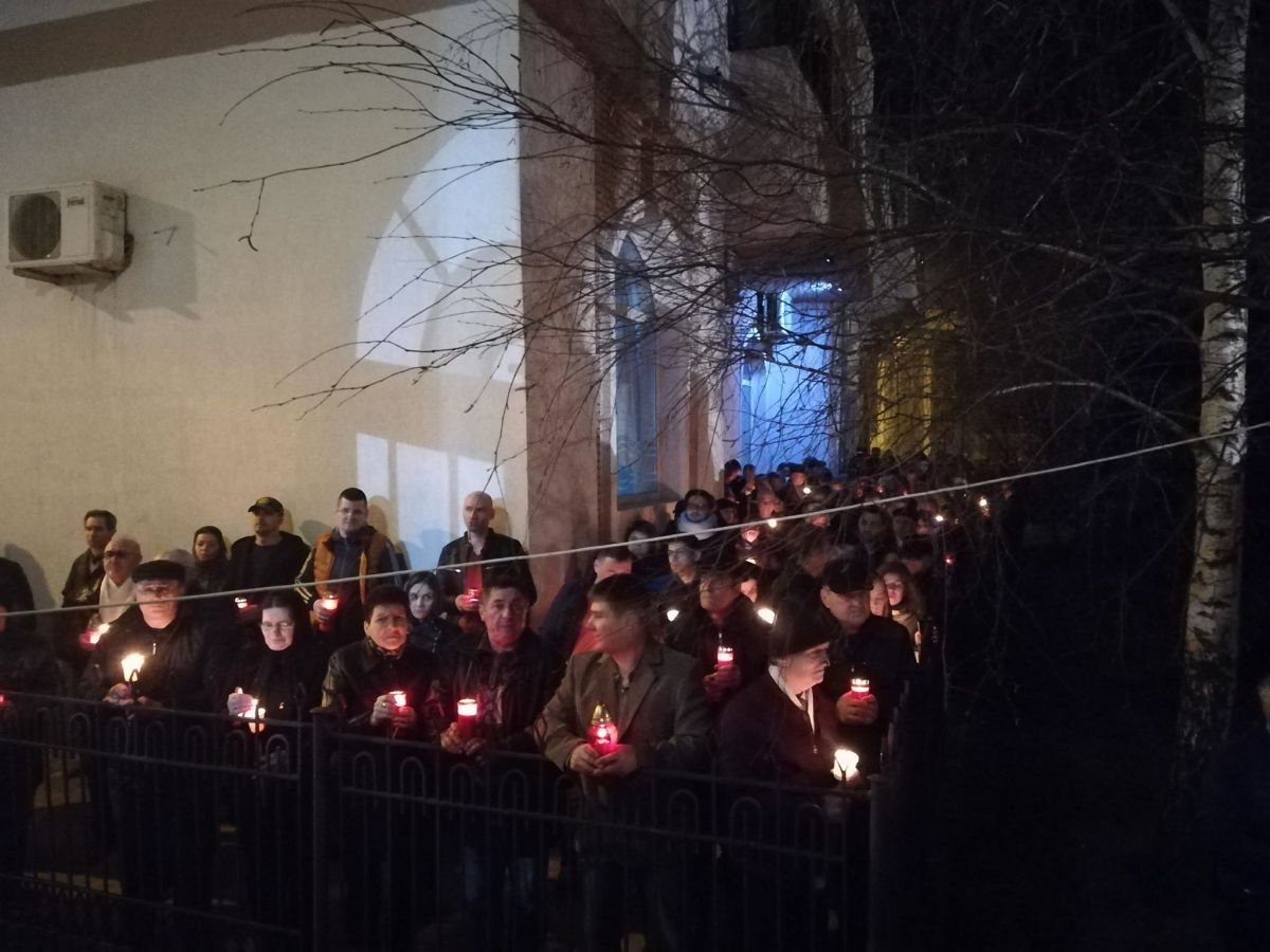 În timp ce unii botoșăneni ținând în mână candele și lumânări aprinse s-au îndreptat spre casele lor, alții au rămas să participe în continuare la Sfânta Slujbă.