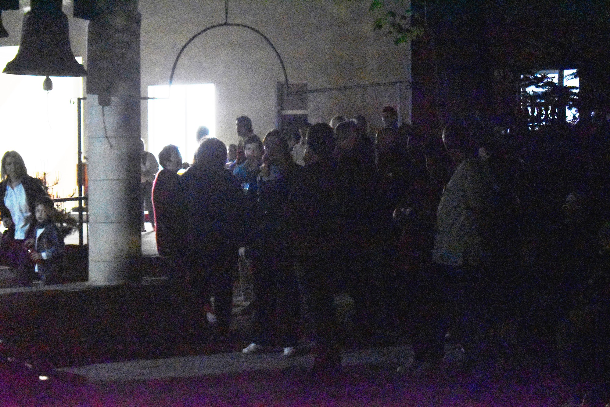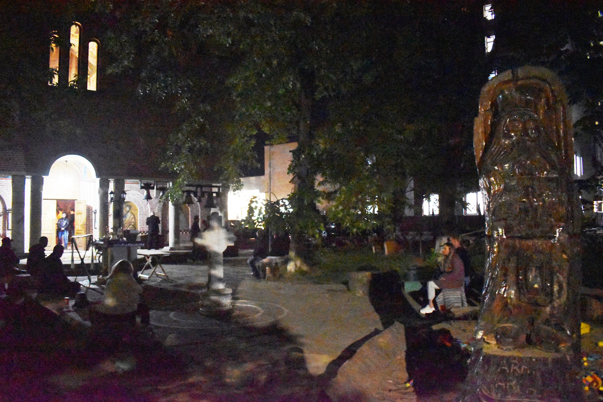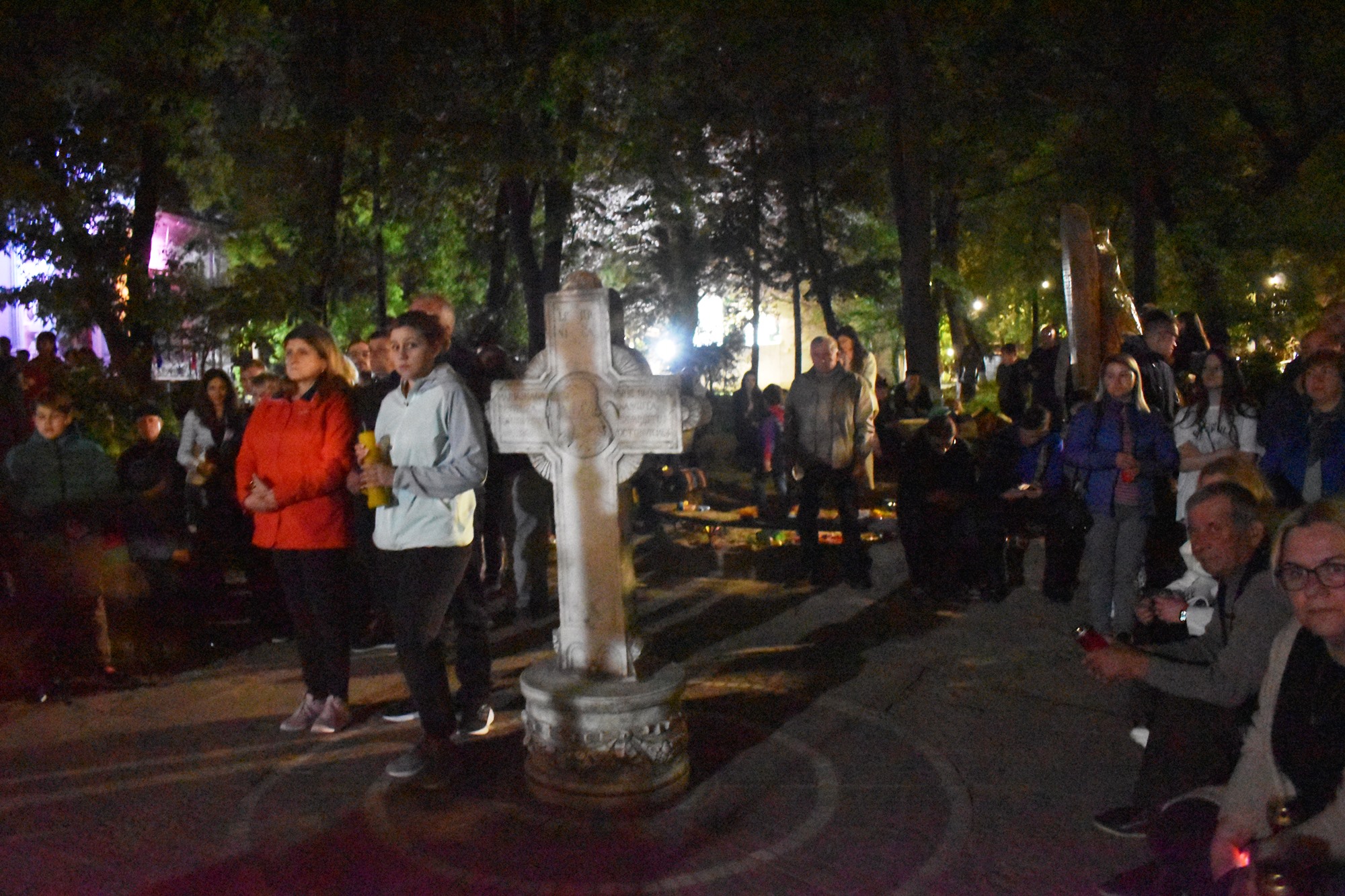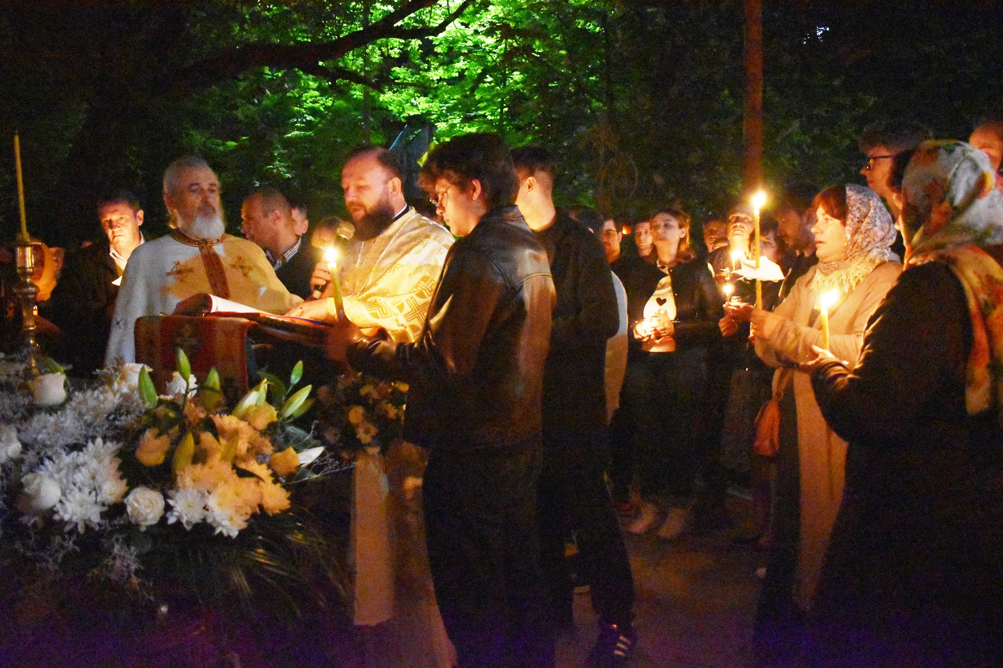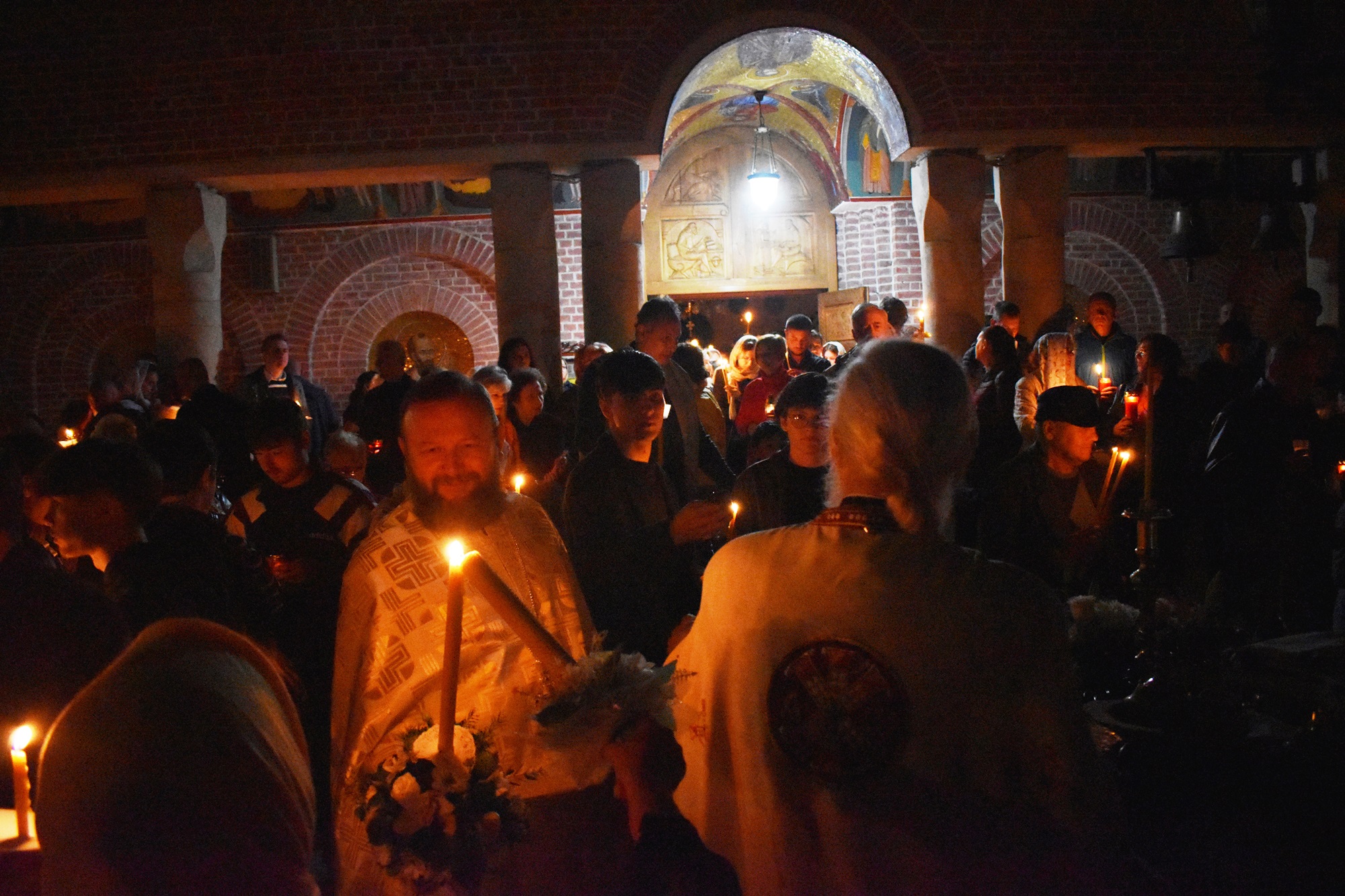 În sunete de clopot, în puține minute curtea s-a umplut de lumină, mulțimea cântând în cor: Hristos a Înviat din morți / Cu moartea pe moarte călcând / Și celor din morminte / Pace dăruindu-le.