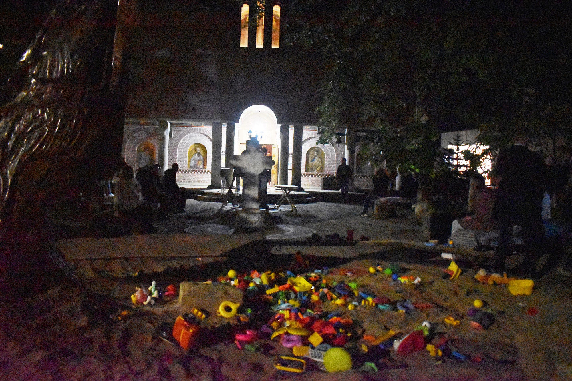 Acolo este amenajat și un mic loc de joacă pentru copii, din care nu lipsește leagănul, și pe lângă acesta, printre băncile din apropiere, dincolo și dincoace de gardul bisericii, preoții au fost așteptați de sute de oameni.