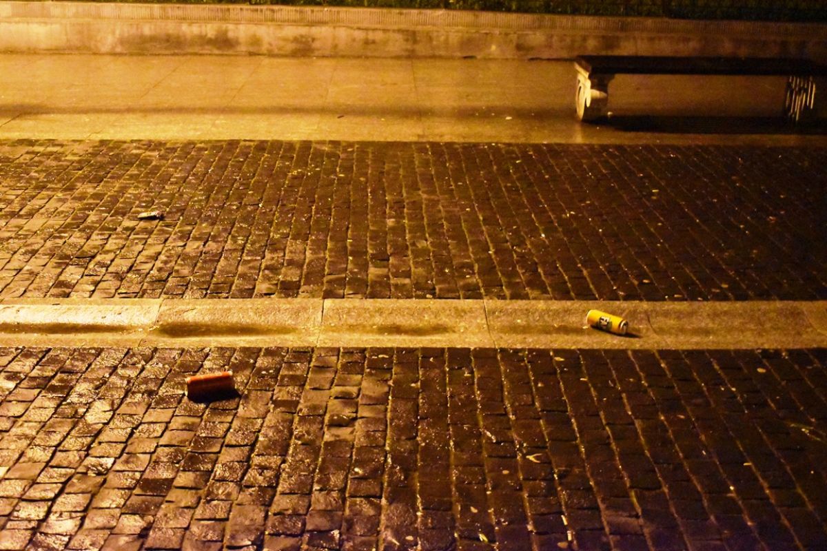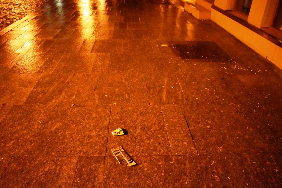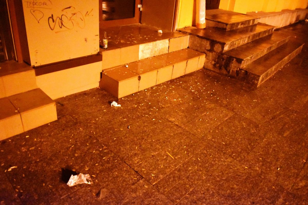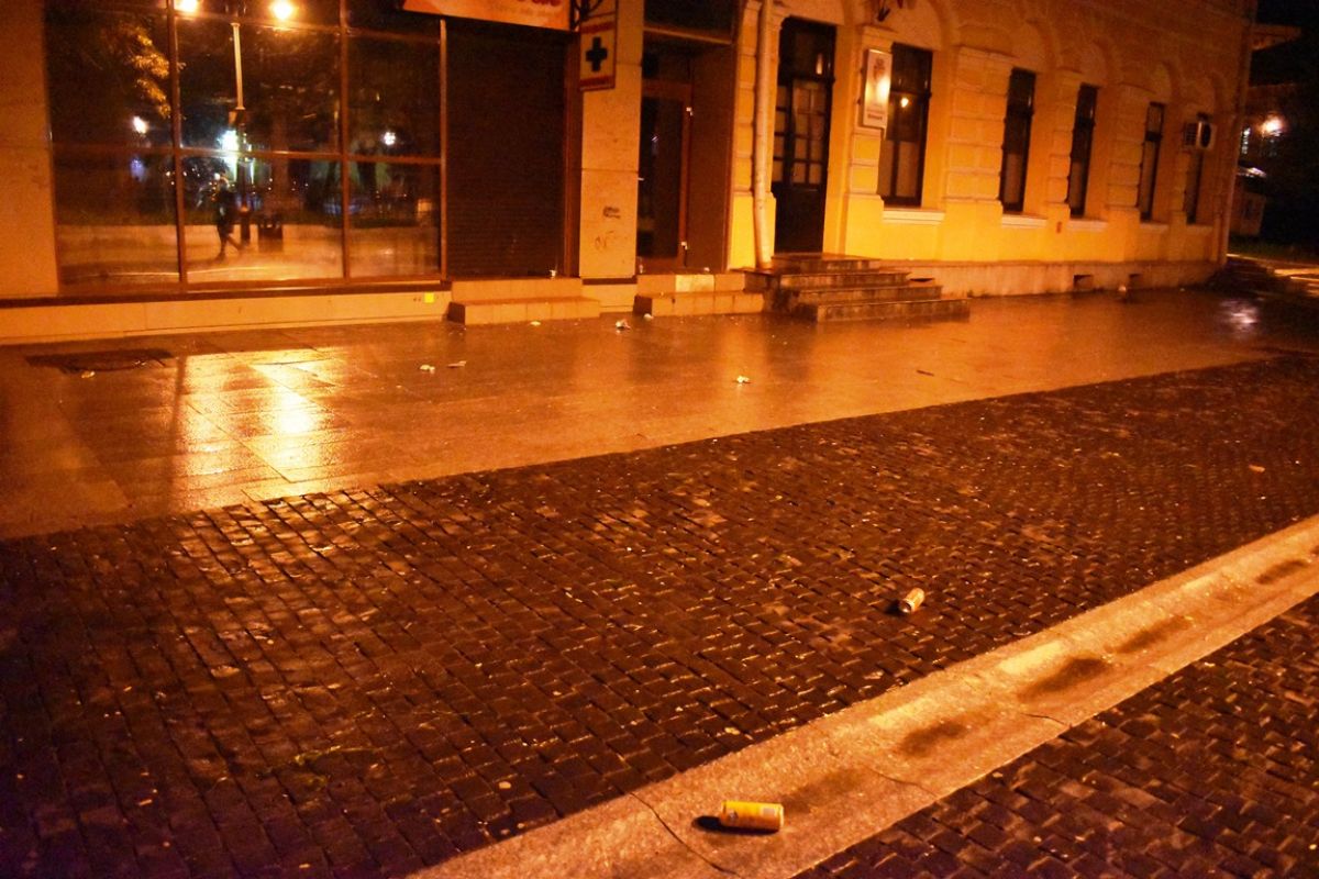 Pe lângă biserică, în bătaia vântului și sub picăturile de ploaie, rămăseseră sticle de bere, doze de la sucuri, ambalaje de chipsuri, valuri de semințe...