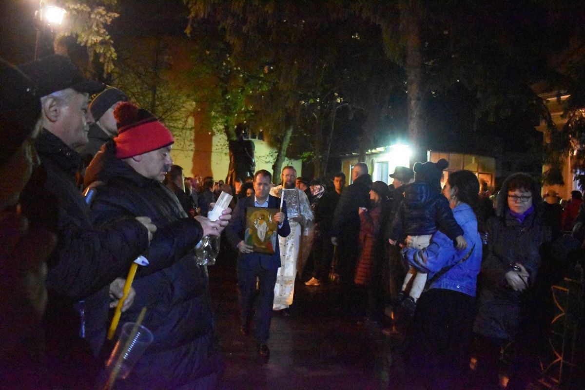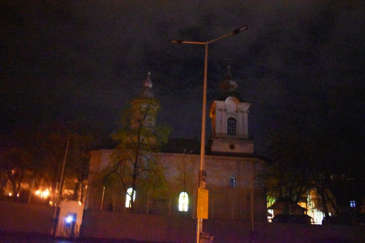 A fost zarvă în Centrul Vechi și în cea mai importantă noapte a anului pentru creștinii ortodocși. Cu un sfert de oră înaintea orei 0:00, sute de oameni se aflau în apropierea Bisericii Uspenia.