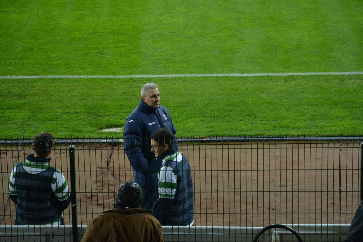 Ulterior, antrenorul a intrat şi în atenţia crainicului de pe Stadionul Municipal, care înainte de a prezenta componenţa echipei oaspete, şi-a exprimat speranţă că „a reuşit să îşi lege şireturile la adidaşi”.