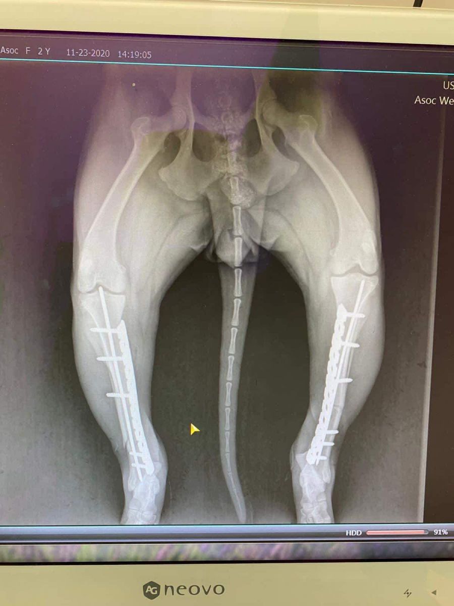 În urma investigațiilor și radiografiilor s-a confirmat că ambele membre posterioare prezentau fracturi duble, unul din membre cu fractura semideschisă, însă încă prezentau sensibilitate”,
