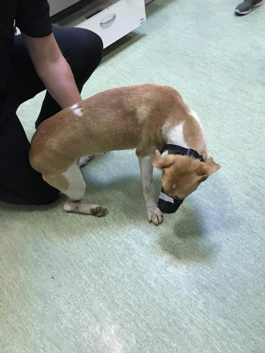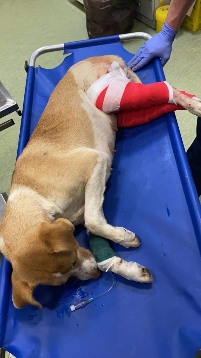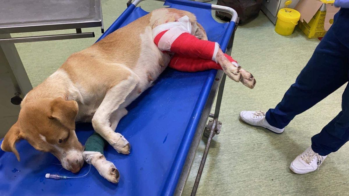 Prinsă în laț și bătută cu atâta cruzime încât i-au rupt picioarele, cățelușa a fost adusă de niște oameni miloși în cabinetul medicilor veterinari.