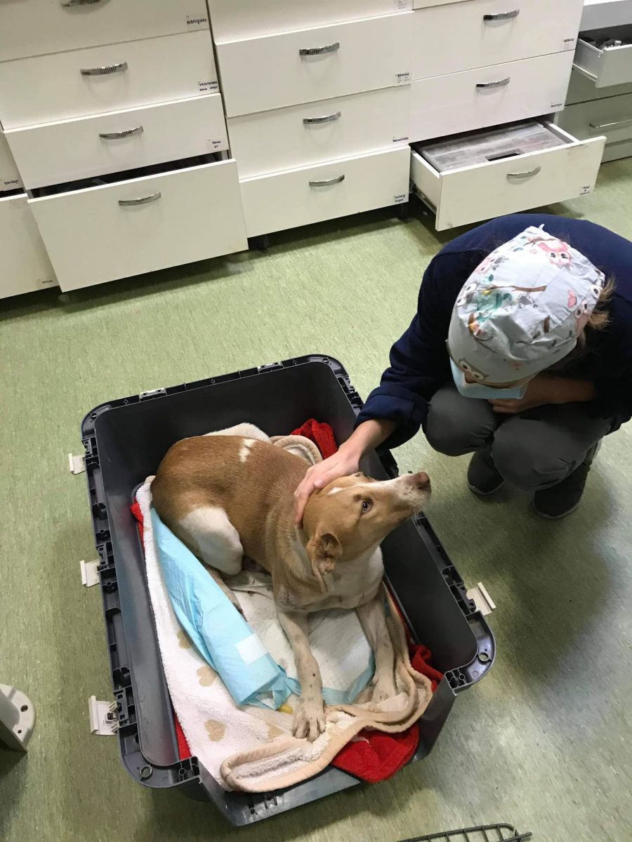 Medicii de la Triovet Botoșani i-au acordat primul ajutor, însă pentru a o salva era nevoie de mult mai mult. Tot cu ajutorul oamenilor de suflet, cățelușa a fost transportată luni dimineață în centrul universitar Cluj.