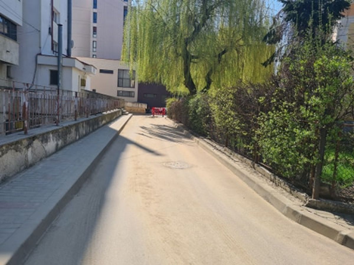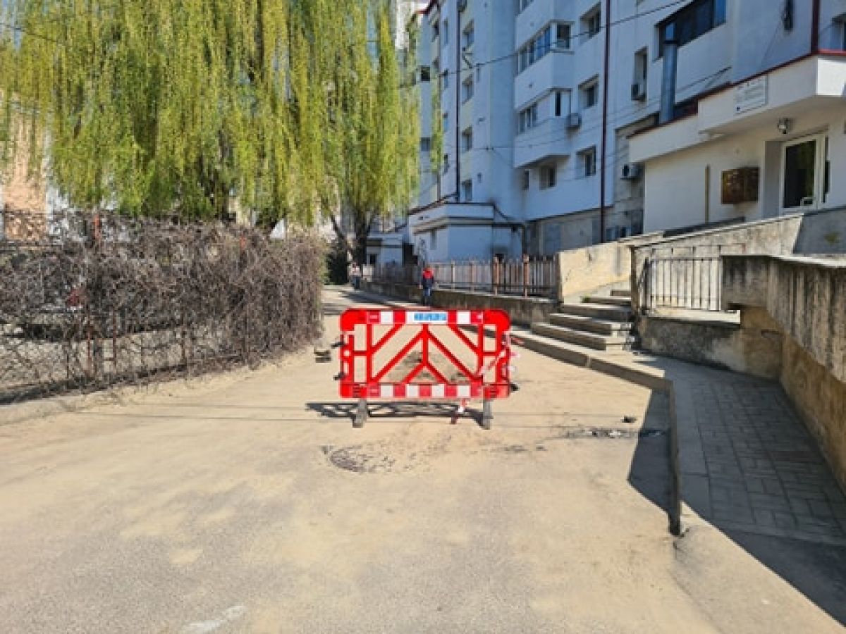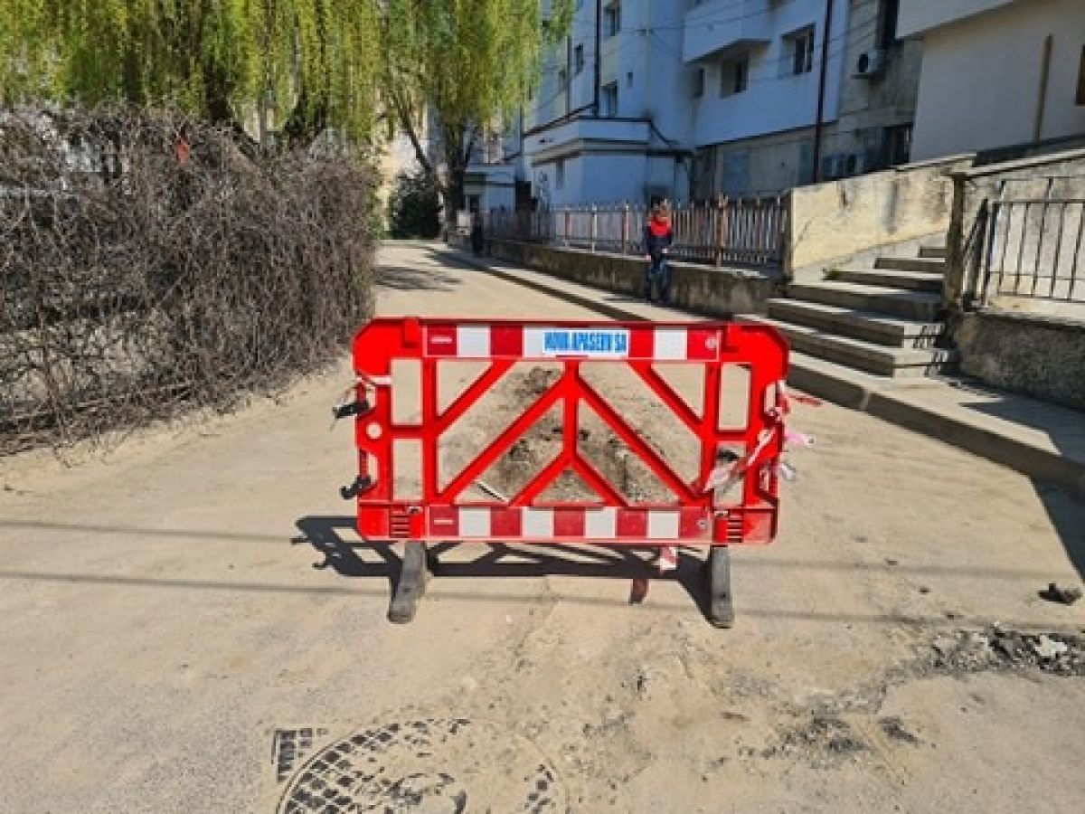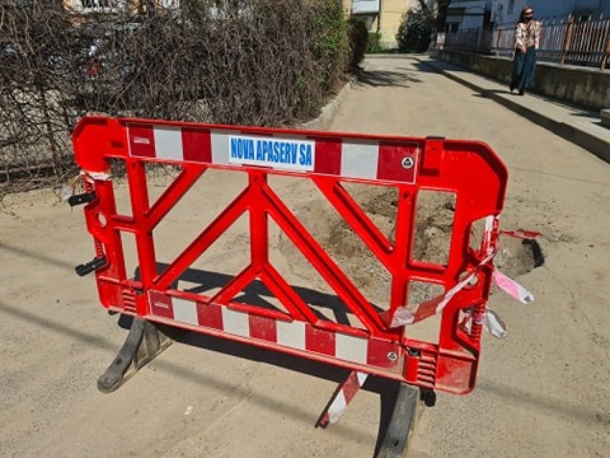 Un panou pe care este inscropționat numele societății Nova Apaserv a fost așezat în mijloc, blocând trecerea autoturismelor care ori sunt nevoite să intre pe interzis, ori să dea cu spatele să iasă din nou în strada Cuza Vodă pentru a căuta o altă rută.