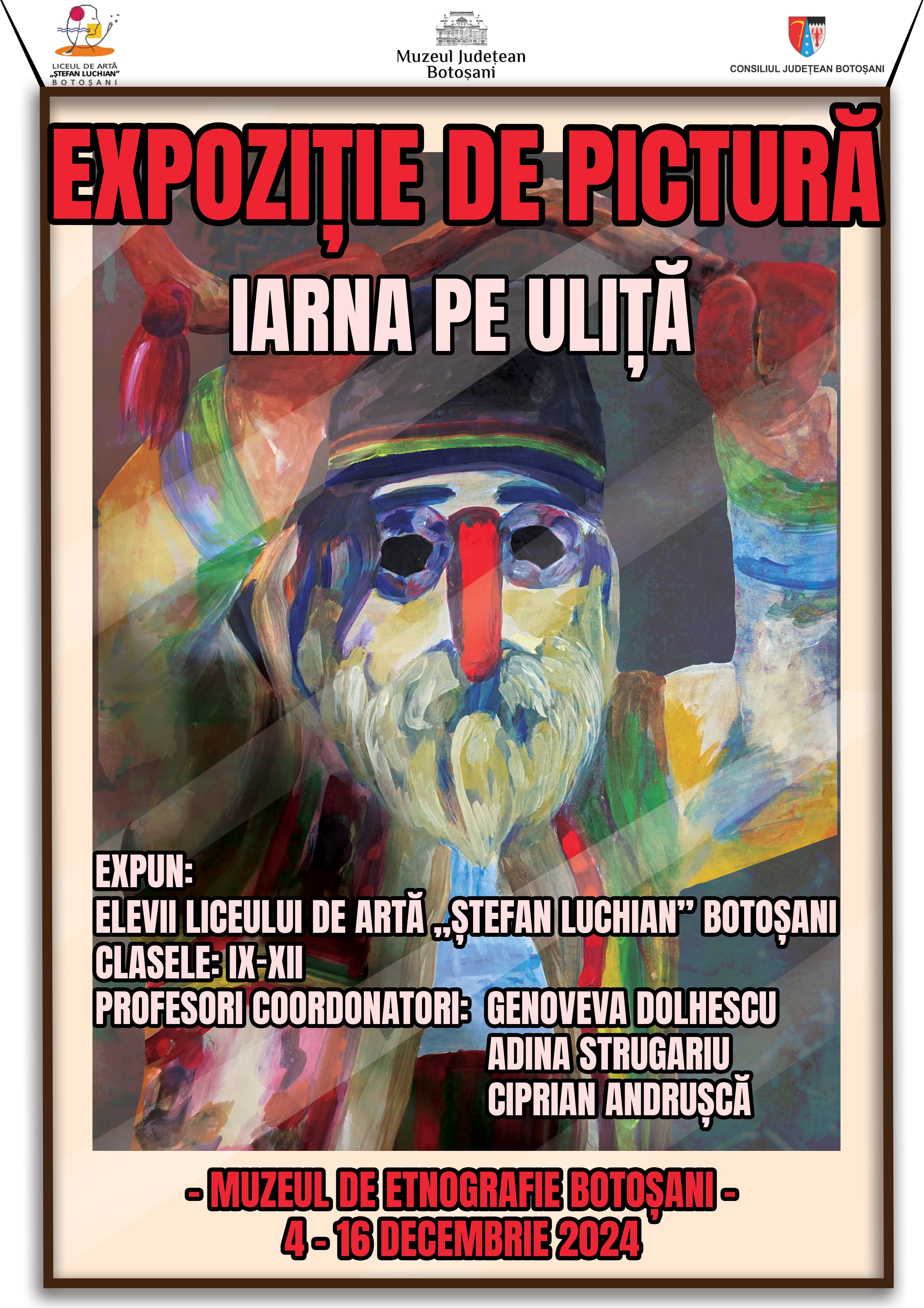 Muzeul de Etnografie Botoșani găzduiește, în perioada 4-16 decembrie 2024, expoziția de pictură intitulată „Iarna pe uliță”.