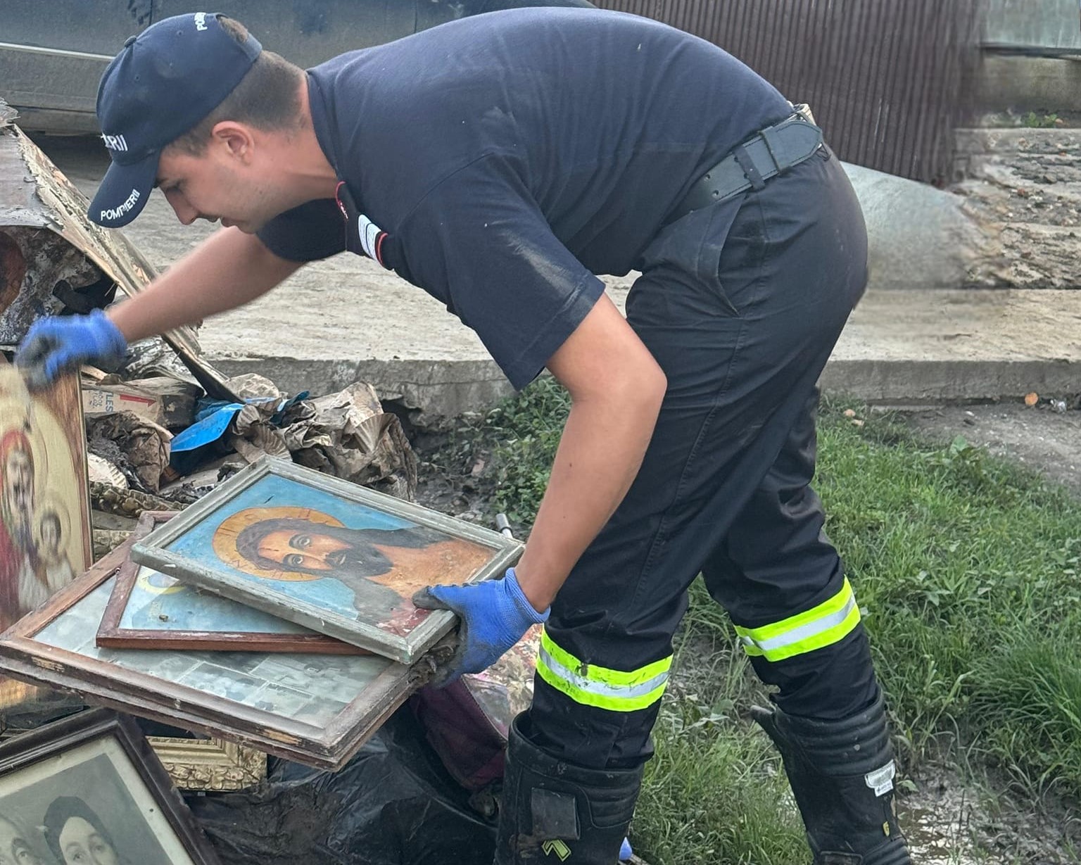 În urma inundaților devastatoare, printre dărâmături și nămol, icoanele din fotografie au rămas neclintite.